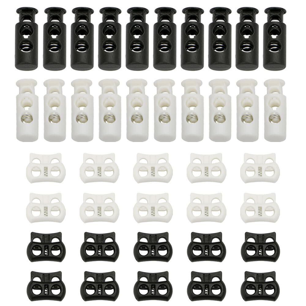 YIXINLYMY スプリングコードストッパー コードロック 紐止め 40個入り(白と黒) 丸型 長いカラムタイプ 2つ穴 プラスチック製 交換 補修用リュックサック 運動シューズなど 衣類 リュックサック 運動服など | BASE SHOP