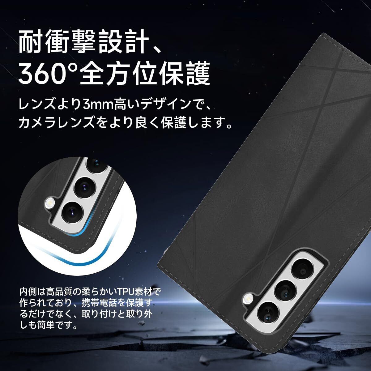 【プレミアム素材の選択】高品質のPUレザーと柔らかいTPUの組み合わせ。厳選された肌に優しい革と絶妙な縫製技術、芸術品のような精緻さと高級感をもたらしますそして肌のような手触り感。TPU素材を使用したソフトカバーにより、軽量と耐衝撃を兼ね備えました、また、柔らかいTPUカバーは取り付け・取り外しが簡単で、スマホ本体への損傷の心配ありません。