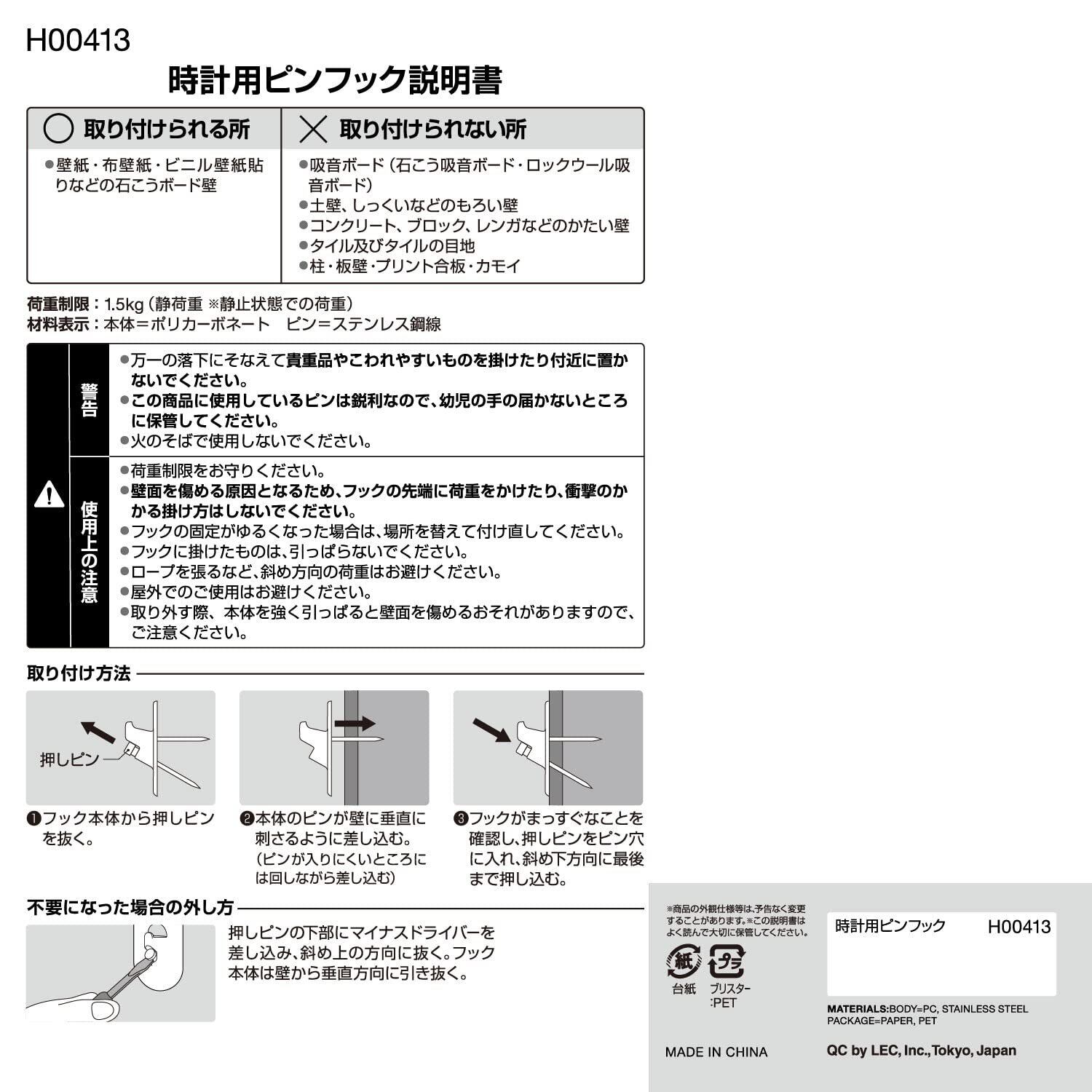 レック(LEC) 時計用 ピンフック 2個入 耐荷重 1.5kg