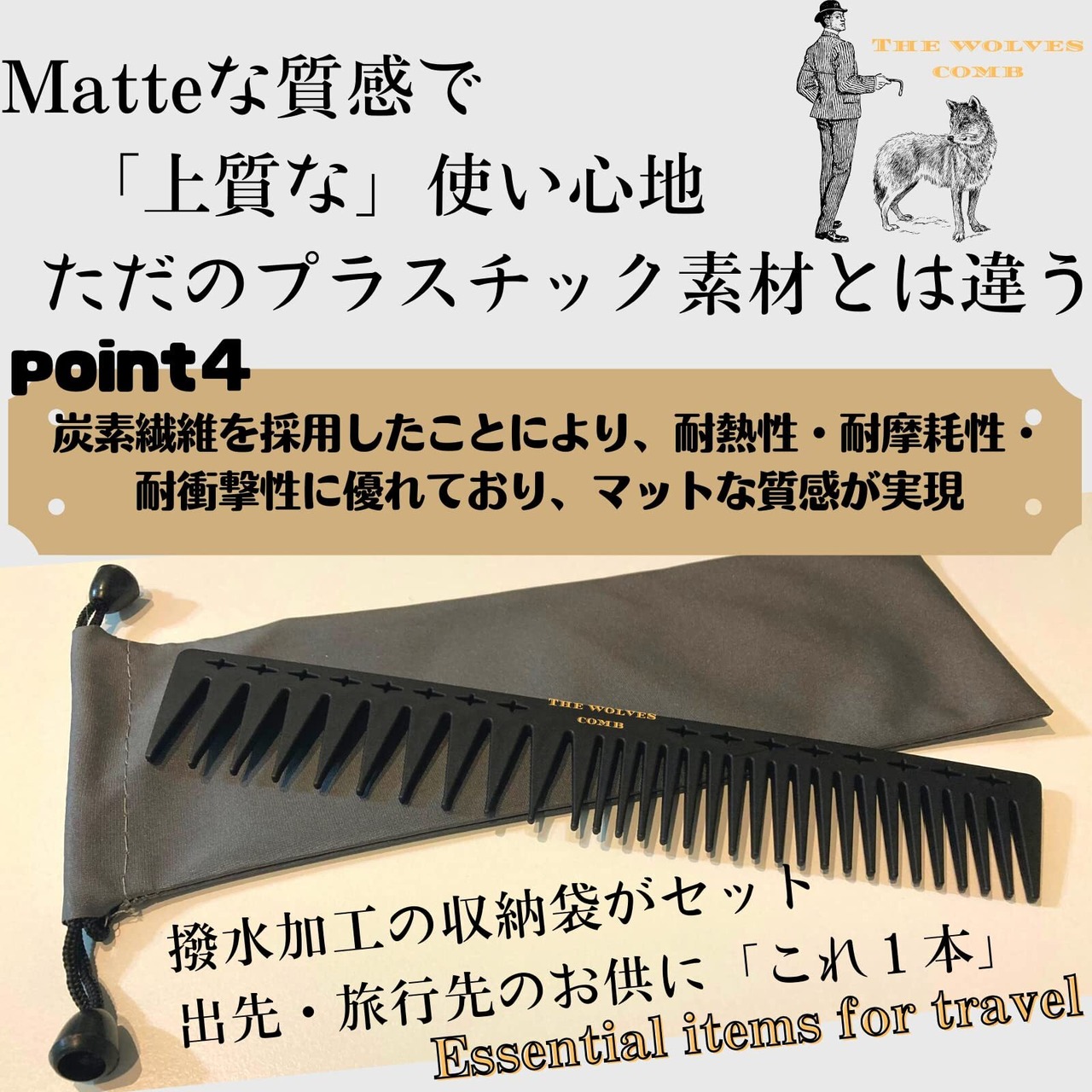 THE WOLVES COMB コーム メンズ バーバースタイリング 高級 カーボンファイバー 粗め 収納袋付き