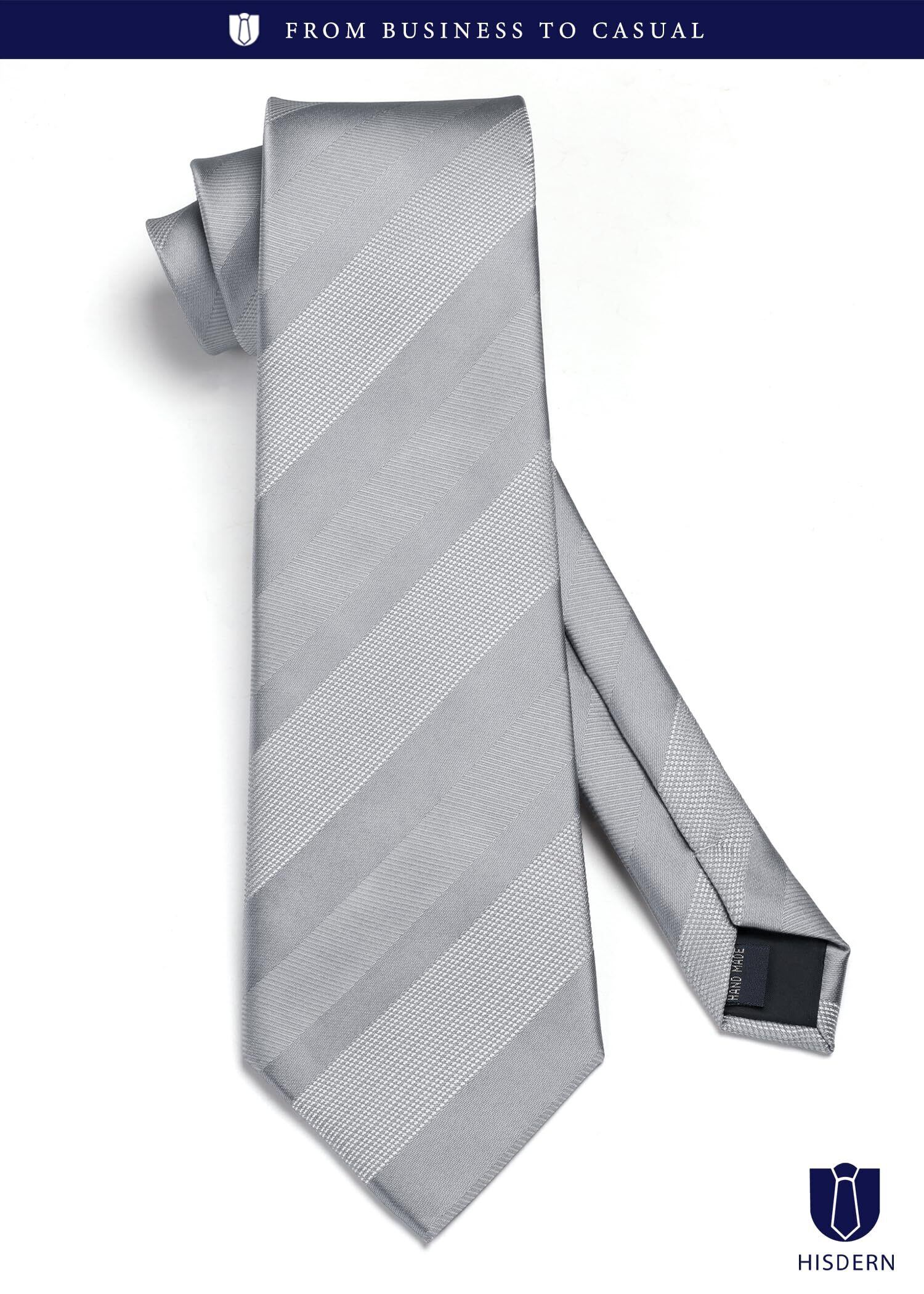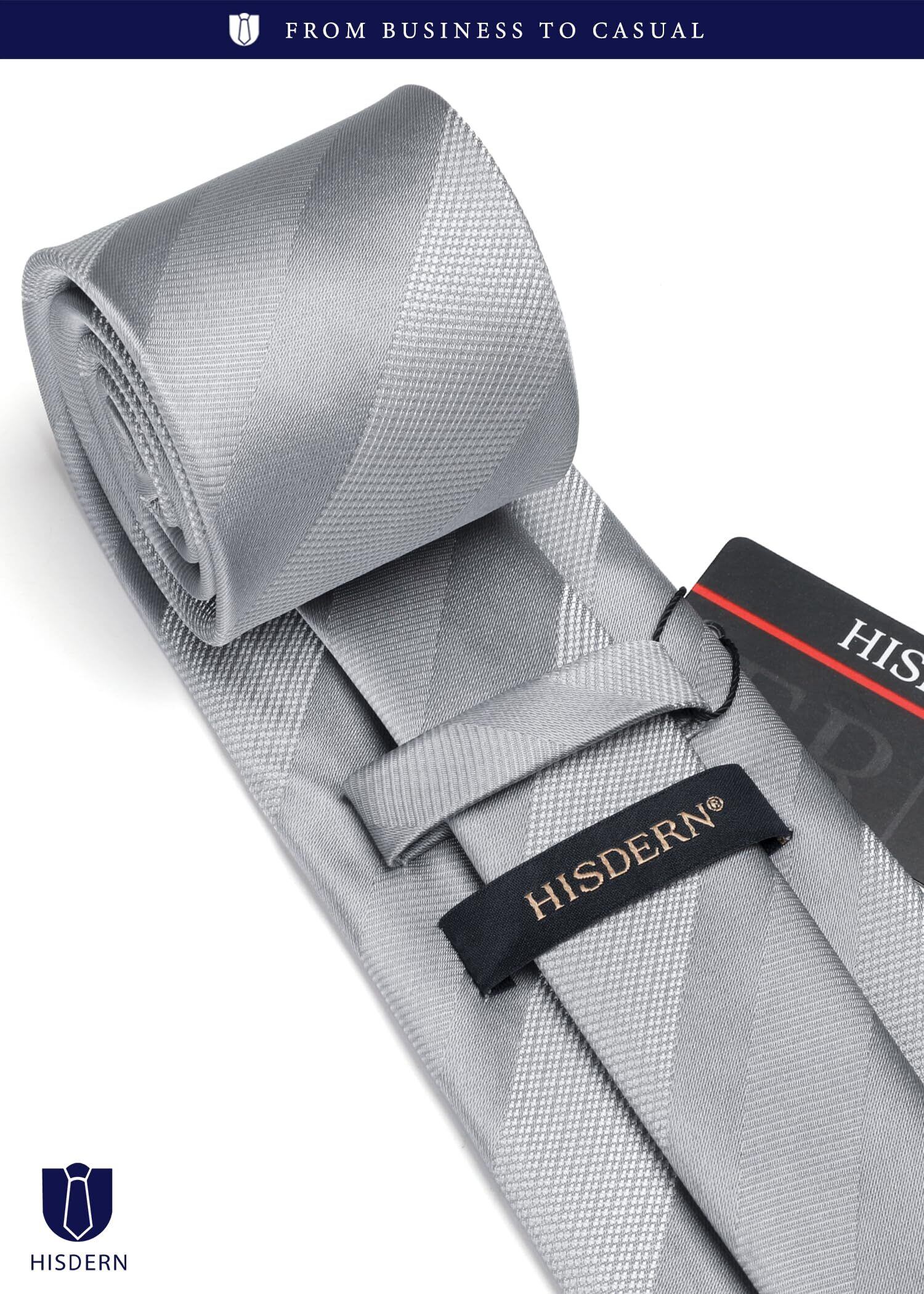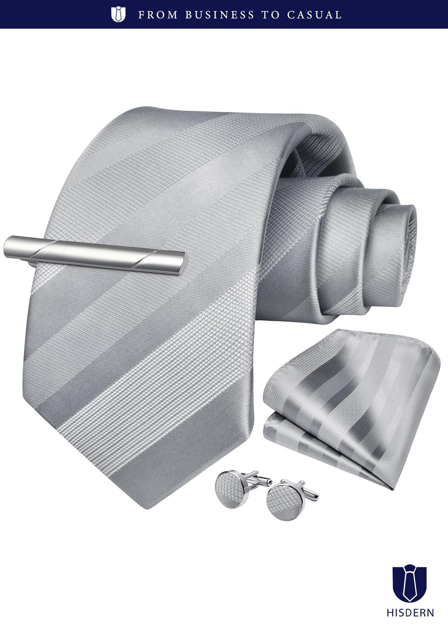 [HISDERN] A4-01 結婚式 シルバー ネクタイ チーフ タイピン カフスボタン 4点セット シルク フォーマル メンズ 幅8.5cm ブランド品 冠婚葬祭 婚礼用 礼服用 新郎 41柄