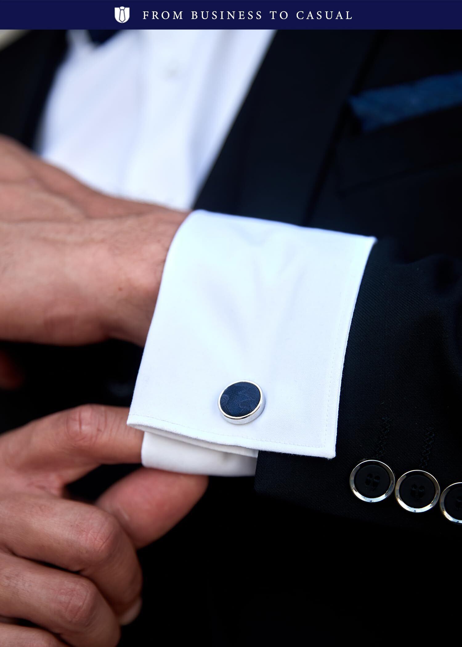 【タイと同じ柄カフスボタン】ネクタイと同じ柄のカフスボタンが付き、ネクタイと合わせることで婚礼な雰囲気を演出できます。