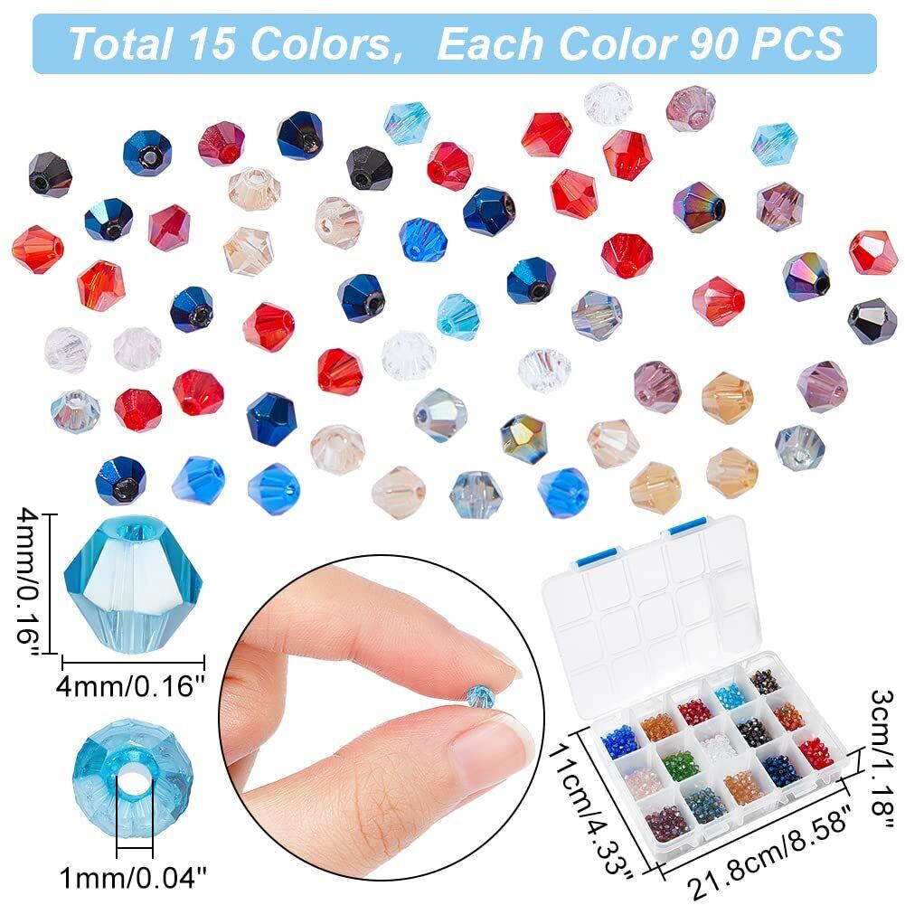 PH PandaHall 約1350個15色 ガラスビーズ 4mm クリスタルビーズ 多面的 オーストリア カットビーズ 双円錐形 スペーサービーズ DIY用 ジュエリー用 手作り素材