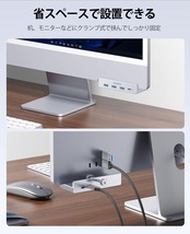 【クランプ固定式、省スペース】クランプとUSB C ハブはネジで組み合わせる設計で、工具を使わずデスクやモニターに設置可能、省スペースのデザインです。固定する部分が可動式なところですから、カーブのモニタもしっかり固定できます。(約5~28mmの厚さを対応できる)