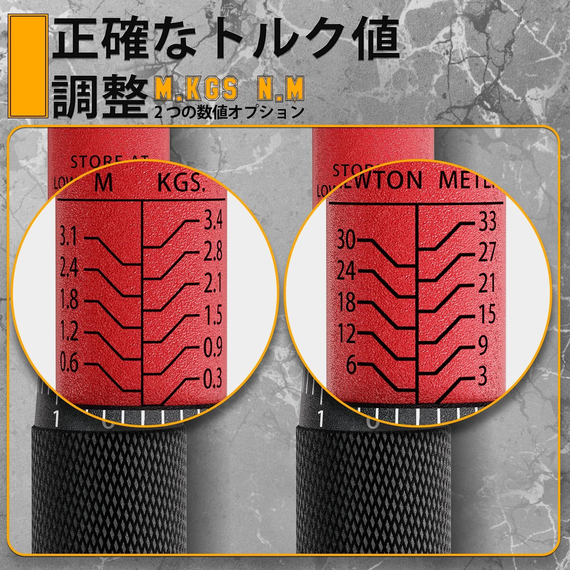 レーザー目盛り:レーザー加工、数値を読みやすくてトルク設定に便利。ゴミ・ホコリ予防ゴムリング付き。ローレットグリップ:握り心地が良くて、使いやすいです、滑り止めになり、握り具合を良くします