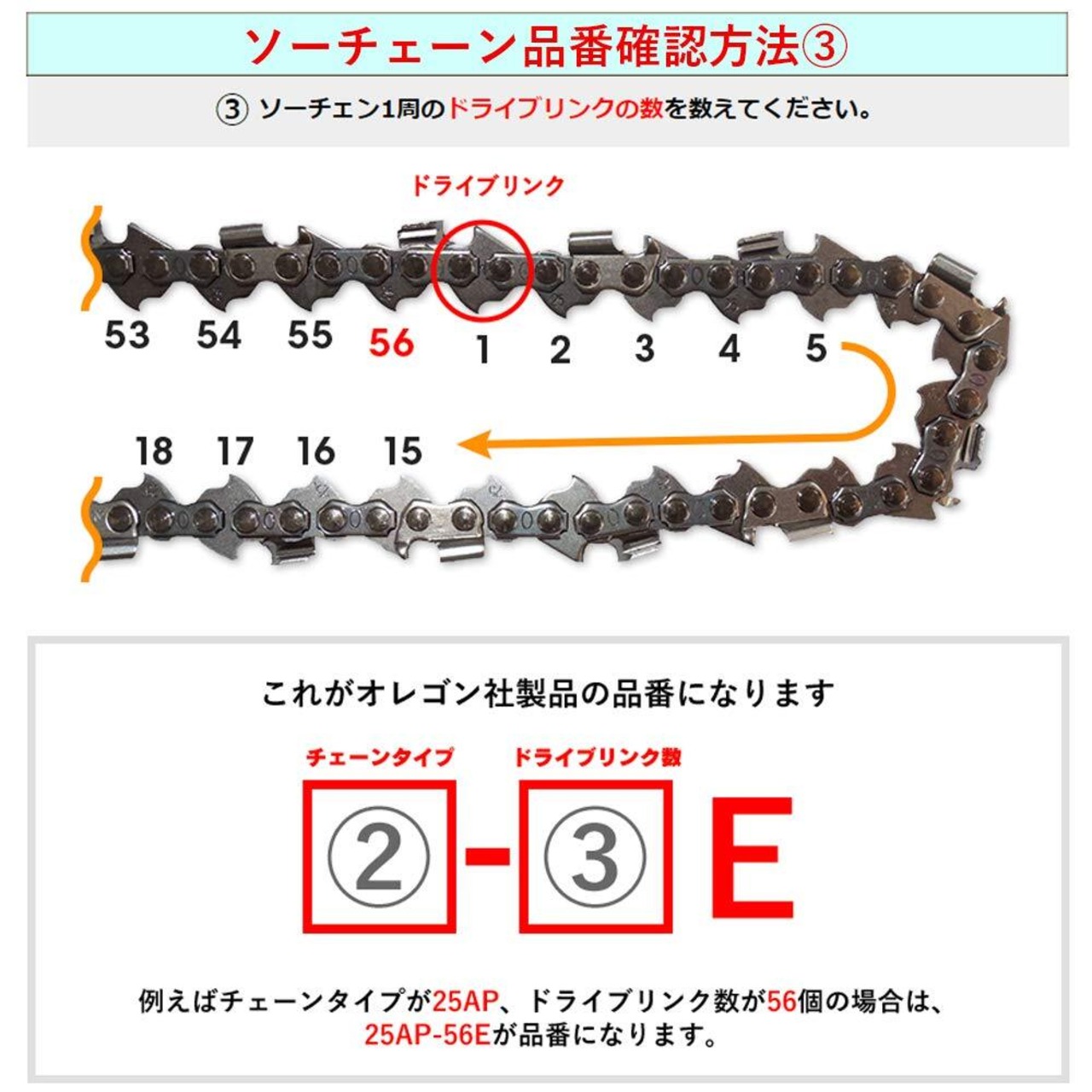 3. ソーチェン一周のドライブリンク(ソーチェンがガイドバーの溝に埋まっている部分)の数。