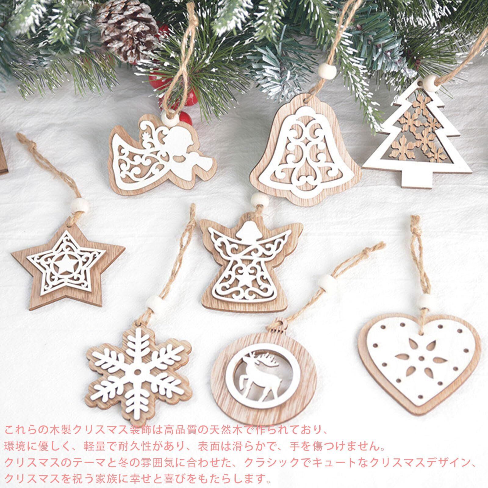 クリスマス オーナメント 木製 8枚 クリスマスツリー 飾り 木製スライス 雪の結晶 トナカイ ベル クリスマスツリー 天使 星 ハート 二層 木材チップ 天然木製 手作り 撮影用 装飾用 小物 DIYクラフト用品 (C 8枚) | BASE SHOP