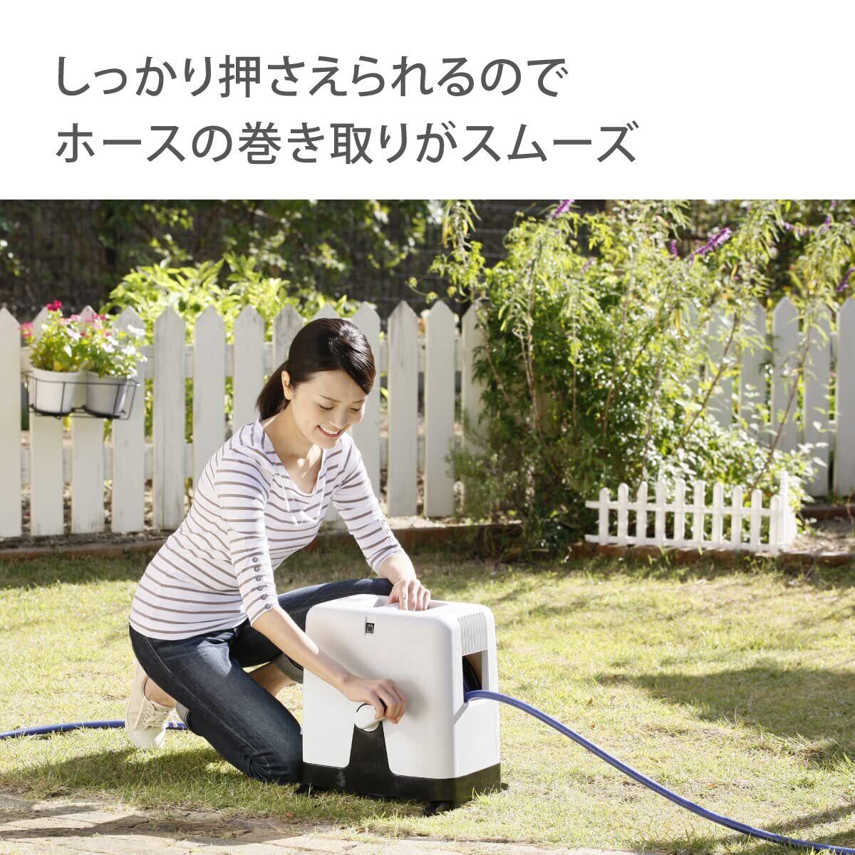 日差しからホースを守る着脱可能なカバー付きボックスタイプの散水ホースリール。