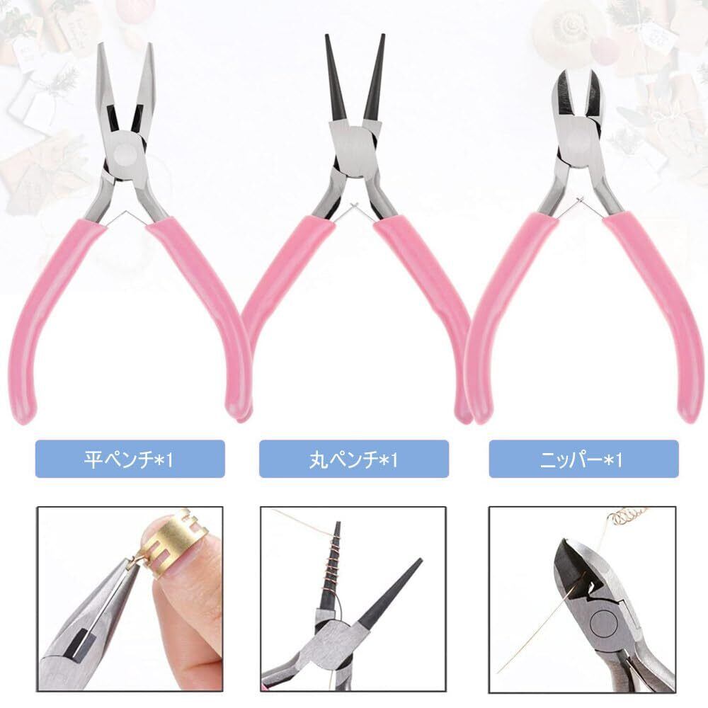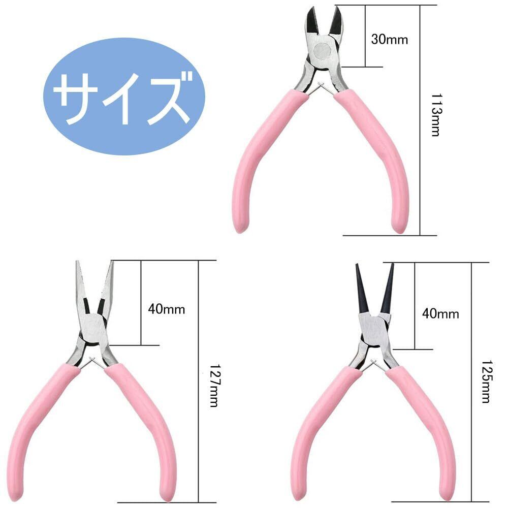 手芸用 ペンチ 3点セット 平ヤットコ/丸ヤットコ/ニッパー 高炭素鋼 防水 軽量 多機能 ビーズ 製作 クラフト DIY 手作り道具 アクセサリー作り 手芸ツール