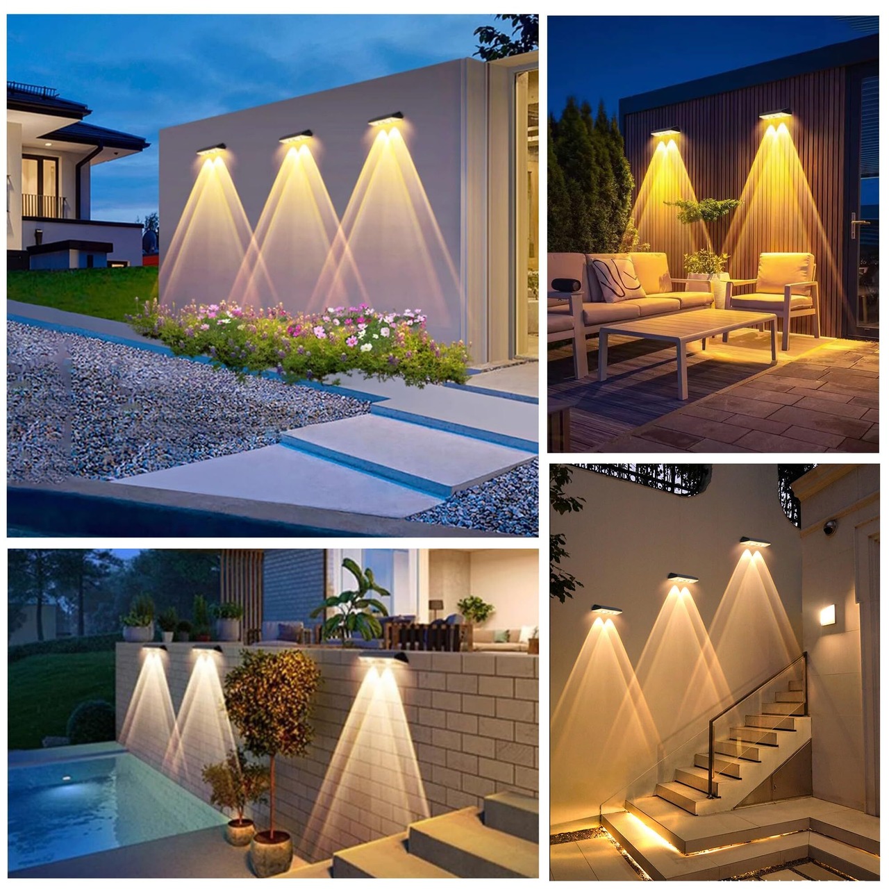 庭 ライト ソーラー ソーラーライト 屋外 ガーデンライト 4個 防水 3色モード 簡単設置 自動点灯 ソーラーライト階段 中庭 庭園 入口 駐車場 ライト 庭 (4)