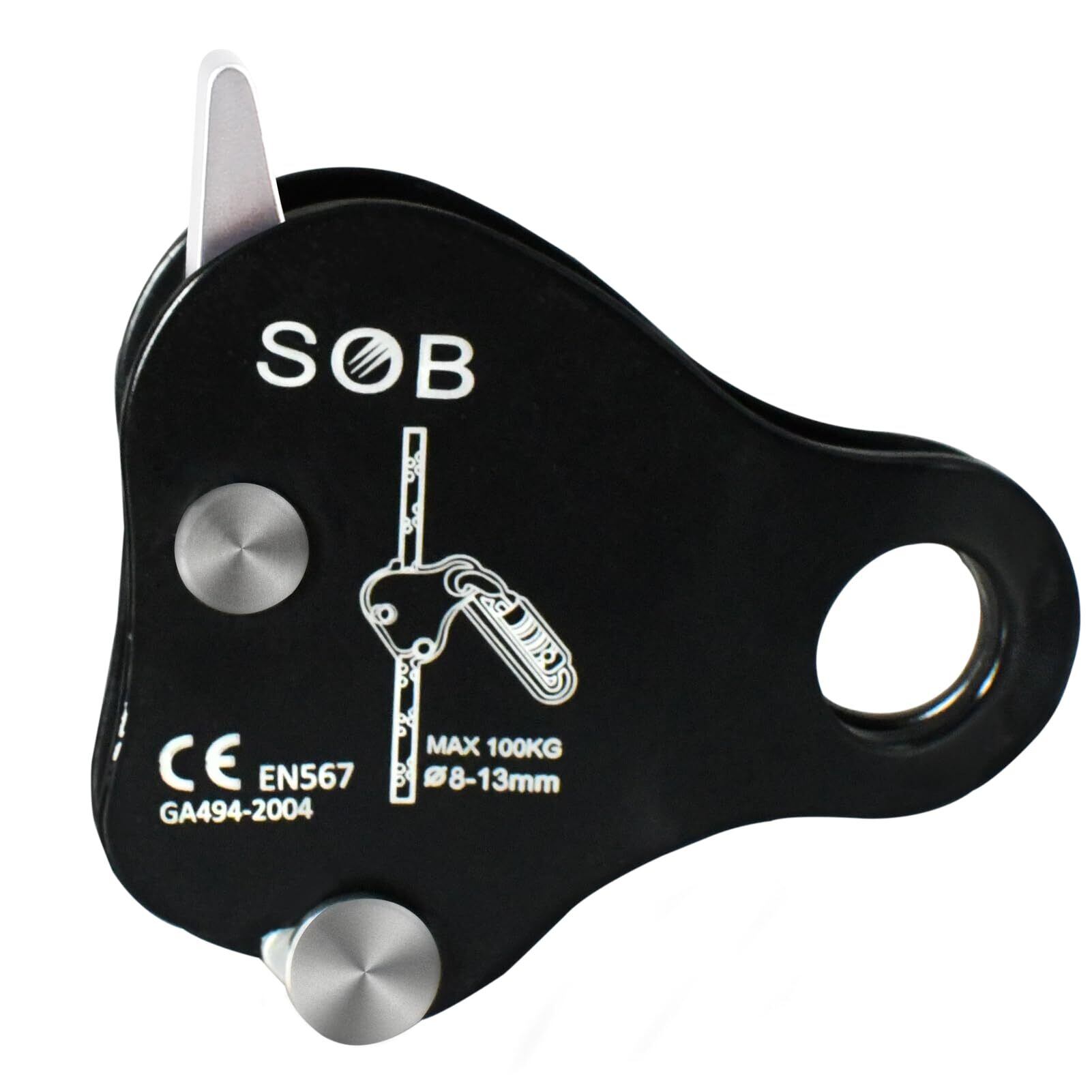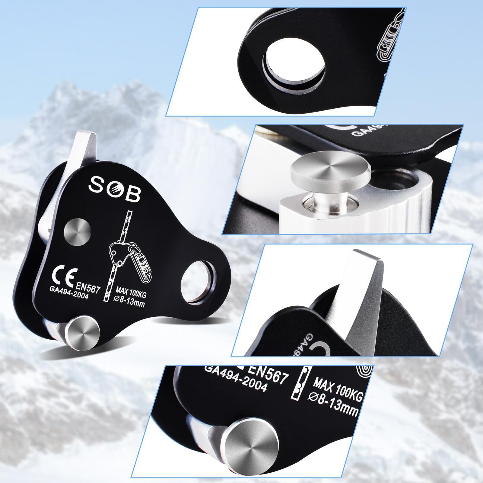 【強度】最大支持力は100kgです。直径8 - 13mmのロープに適しています。サイドプレートはスライドできるのでロープの位置を問わず取り外し可能