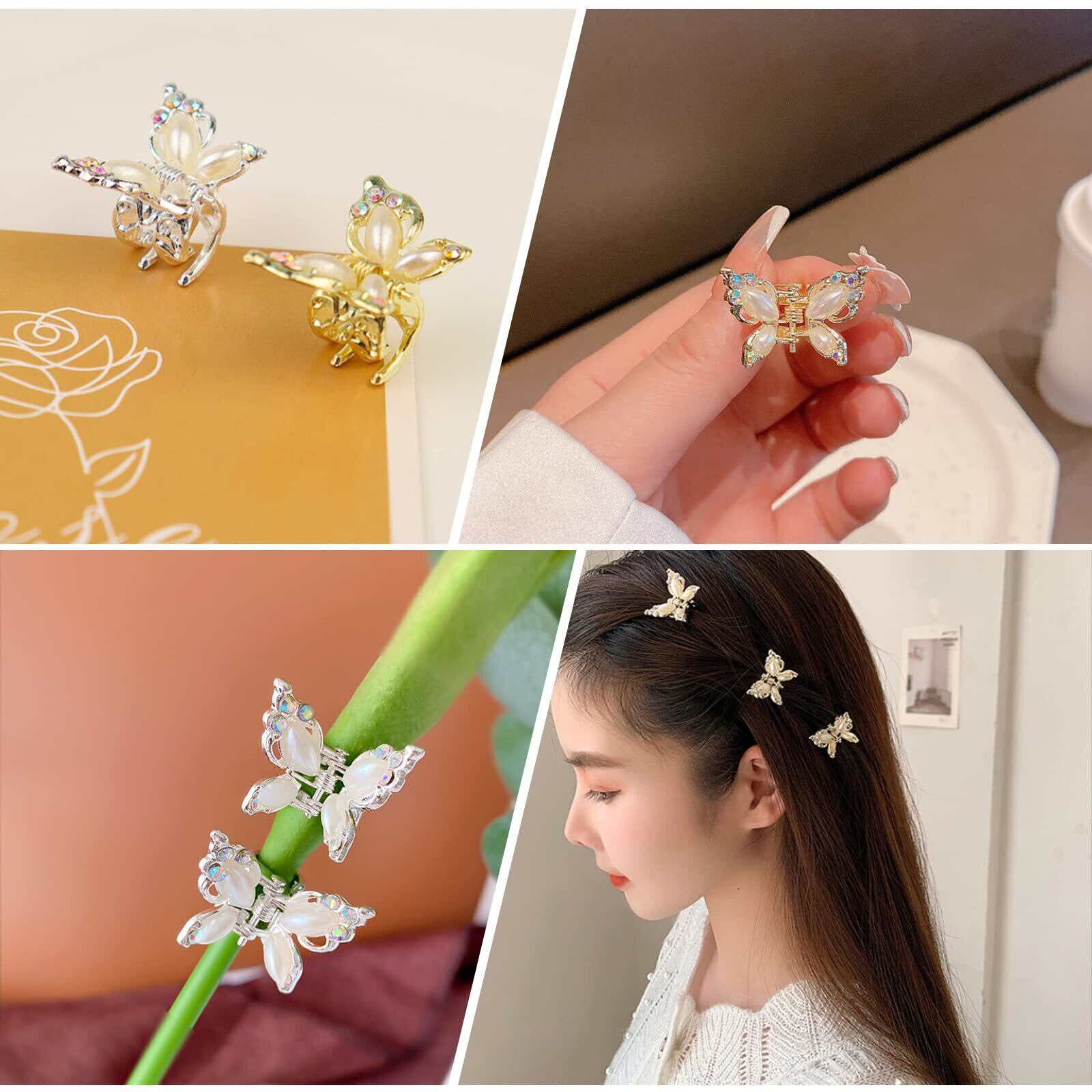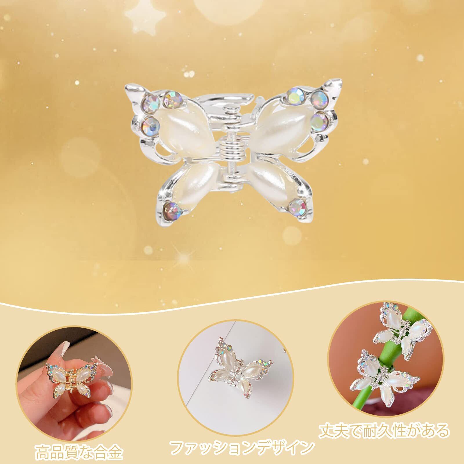 ヘアクリップ ミニ 蝶々 2個セット バンスクリップ 小さめ パール 髪留め クリップ 髪飾り 可愛い キラキラ ヘアアクセサリー ヘアピン 子供 女の子 レディース (シルバー)