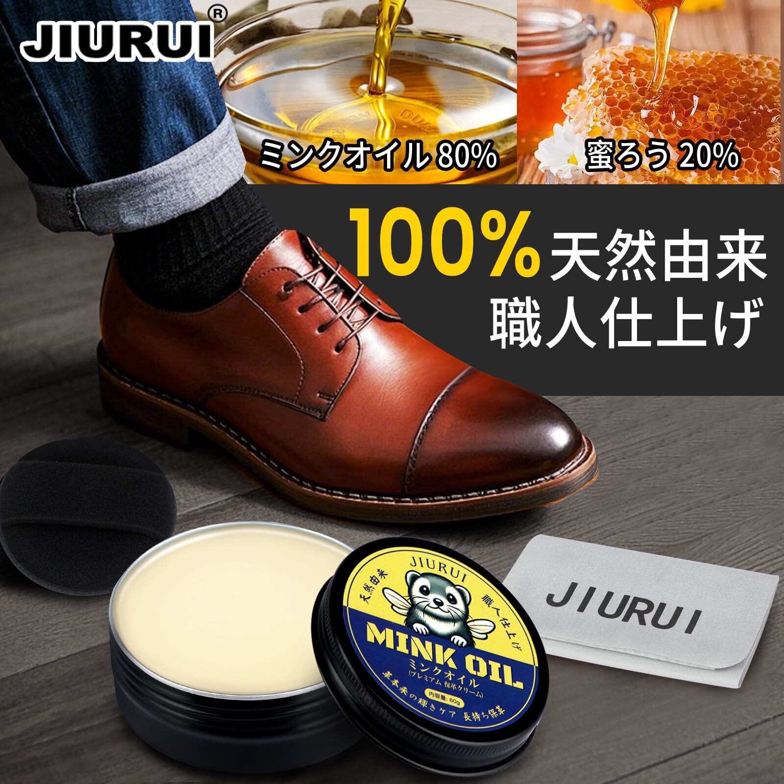 [JIURUI] ミンクオイル 革クリーム 革靴 手入れ レザークリーム 無色 磨きクロス付き 靴磨き保革 レザーケア 栄養 保湿 防水 革バッグ 革ジャン 革ソファー 革靴 革グローブ 革ブーツ対応 60g