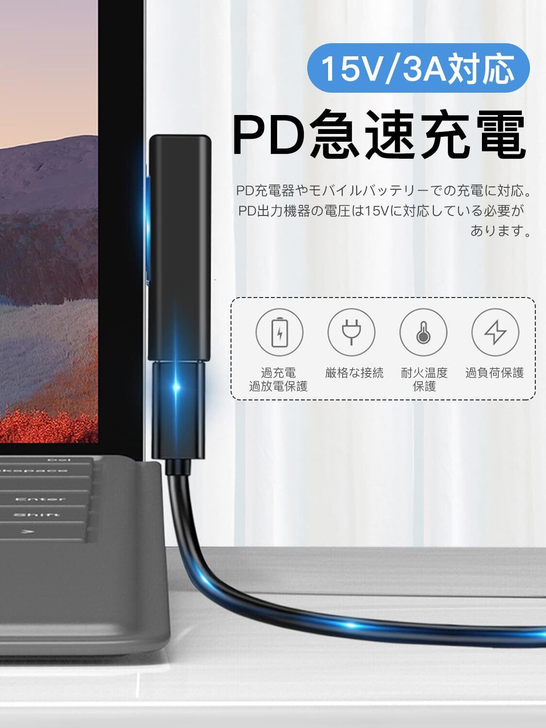 2.【PD急速充電】最大65WのPD充電に対応しており、15V/3A出力でSurfaceデバイスを迅速に充電できます。PD誘導チップを搭載し、急速充電の時代に対応、安定した性能でさまざまな機種に対応します。