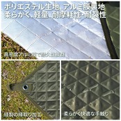 【断熱&防水で快適レジャー】レジャーシート表面:通気性に優れたポリエステル素材で、夏の汗や湿気もサラリと吸収。裏面:アルミフィルム+PUコーティングで水たまりや湿気を完全ブロック! 地面の熱を反射し、冷たさ・暑さを軽減します。