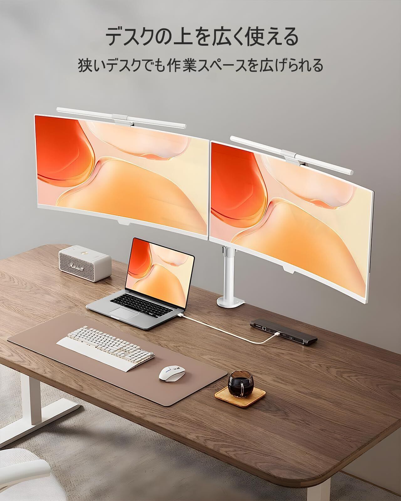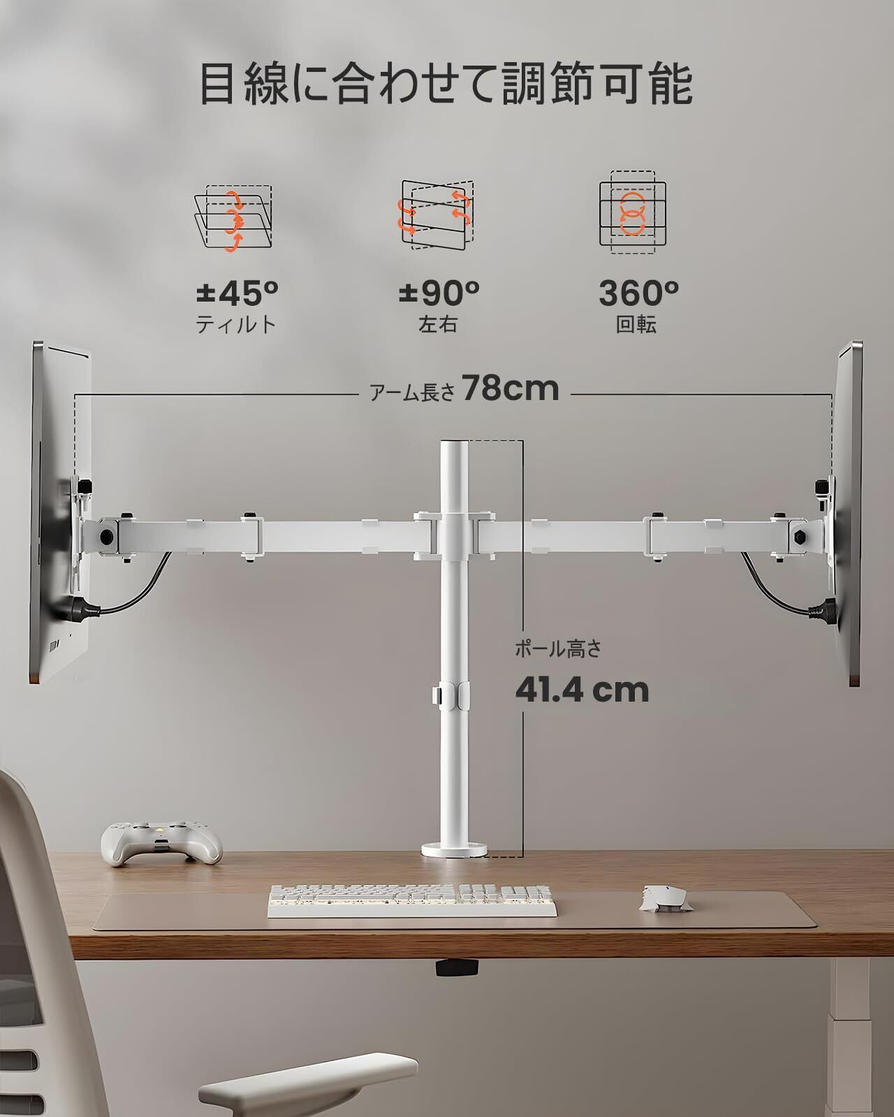 ErGear モニターアーム デュアル 2画面 ホワイト/白 13~32インチ対応 耐荷重2-8kg VESA規格75*75mm 100*100mm ディスプレイアーム PCアーム クランプ式 グロメット式 多角度調節 配線収納 | BASE SHOP