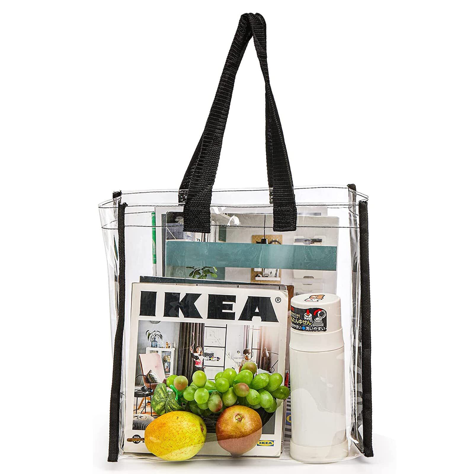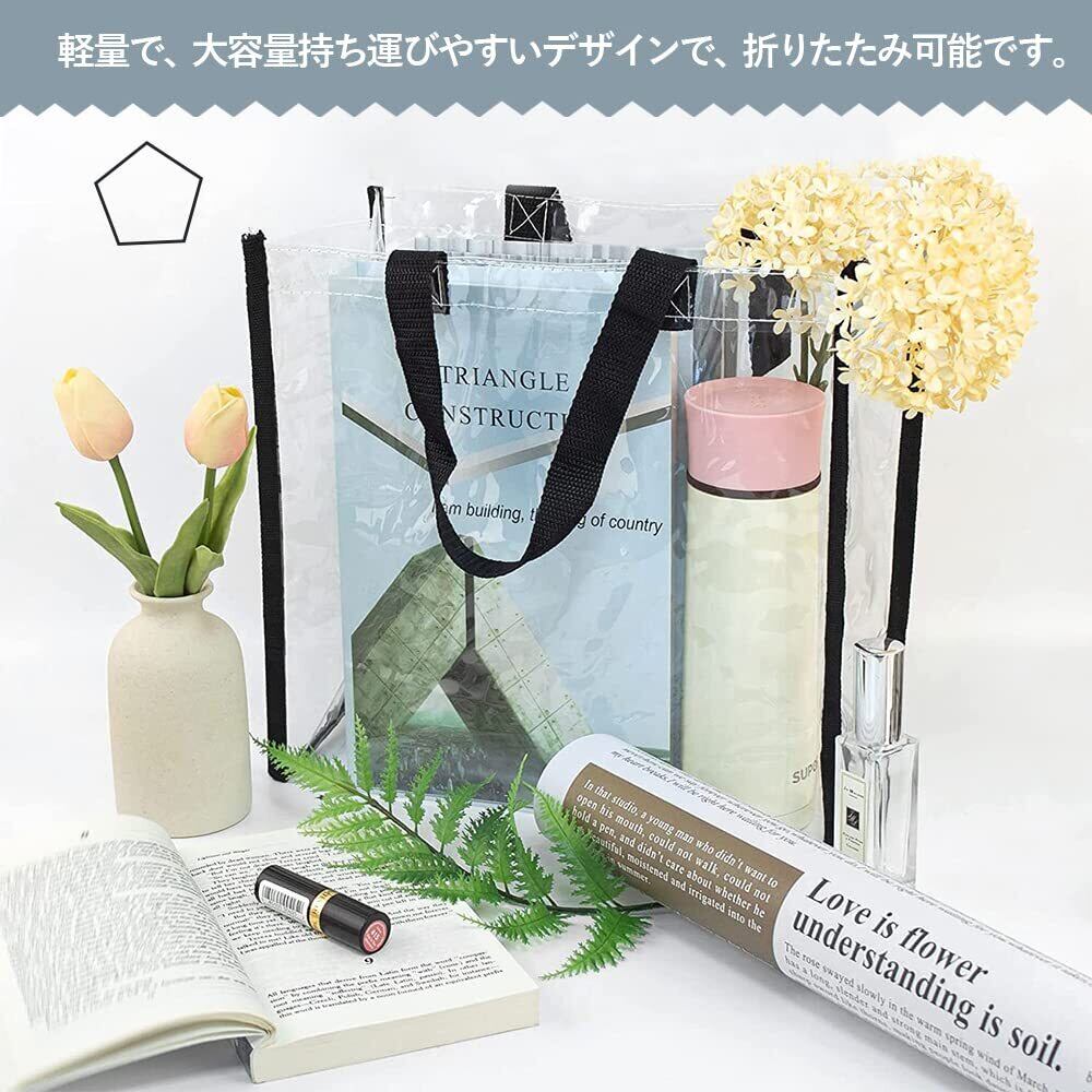 【素材】質感の良いエコ透明PVC素材を使用、ナイロン製の持ち手は補強されており、丈夫で耐久性があり、防水性があり、雨が降っても大丈夫です。(※PVC素材は開封すると少しにおいがするので、散ってもいいです。)