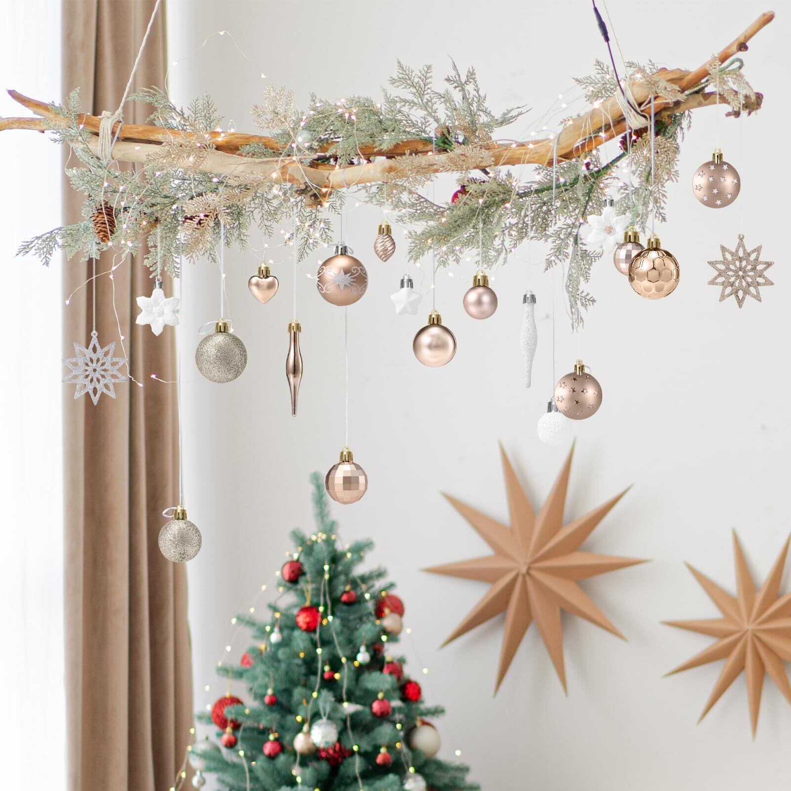 Kesote クリスマスツリー オーナメント ボール 58個セット クリスマスボール 大容量 ツリー オーナメント クリスマス オーナメント 飾り 飾り付け 装飾 デコレーション 花 豪華 ゴージャス おしゃれ 北欧 白&ゴールド | BASE SHOP
