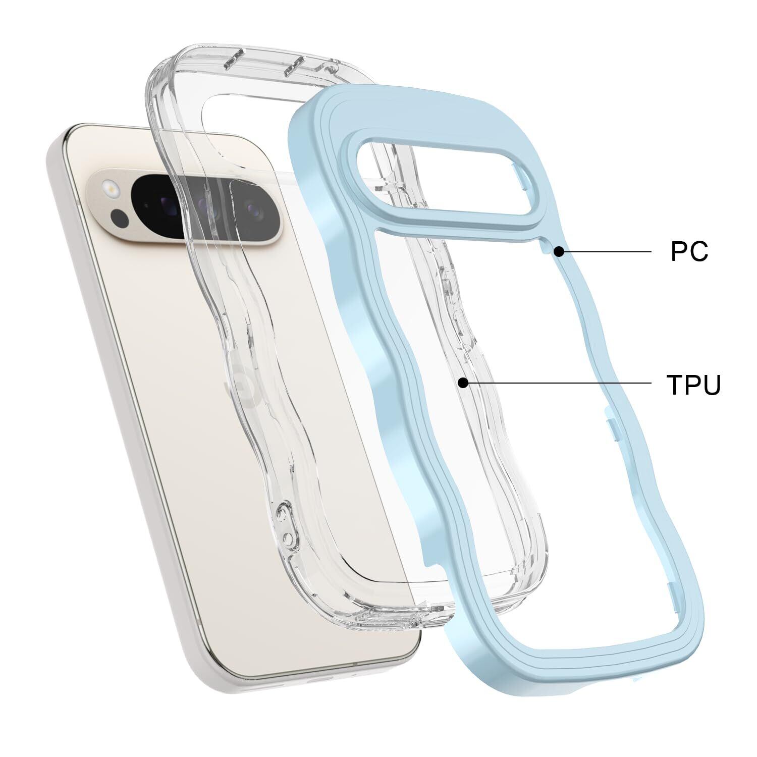 【Newnugds】Google Pixel9 ケース Pixel 9 Pro ケース グーグル ピクセル9 ケース 韓国 おしゃれ シンプル 波状エッジ 透明 2in1 pixel 9 ケース 創意 個性 超軽量 可愛い 女子向け Pixel9/9 Pro スマホケース 指紋防止 擦り傷防止 全面保護 耐衝撃 人気Pixel9/9 Pro ケース ライトブルー | BASE SHOP