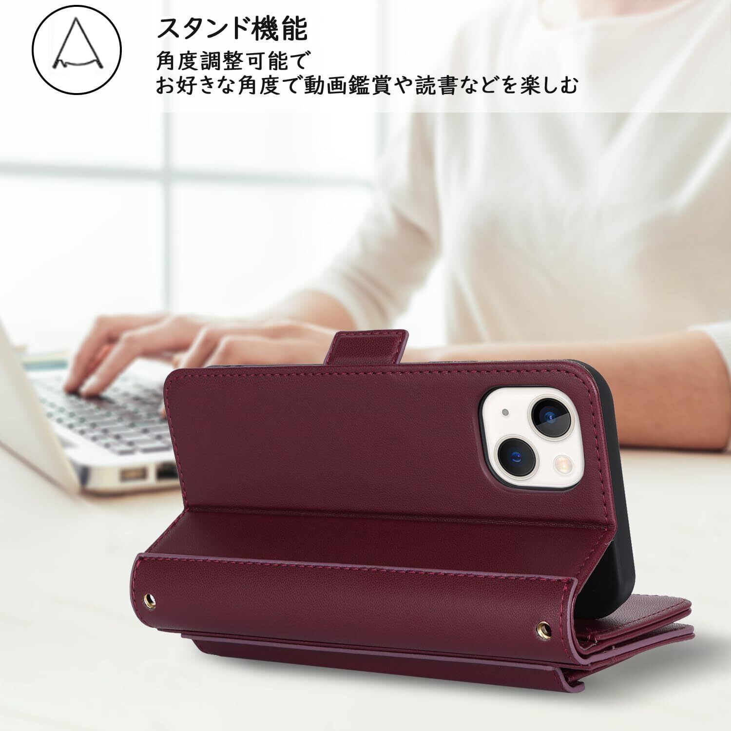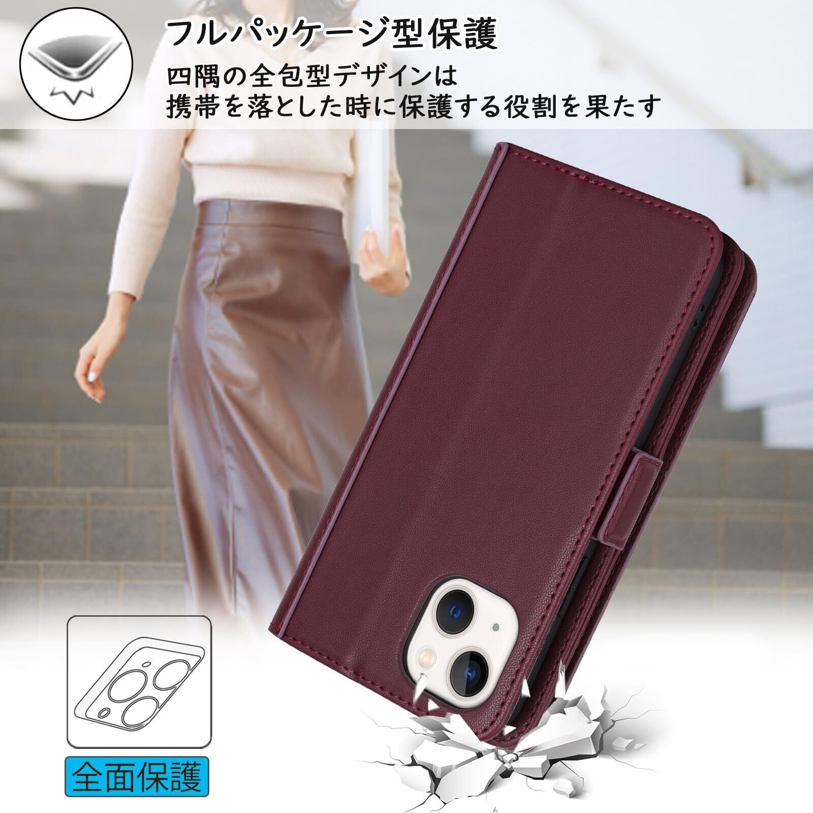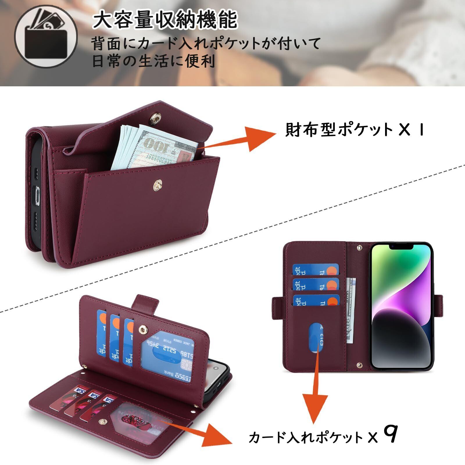 【Hamany】 いphone14 ケース 手帳型 スマホ ショルダー iphone 14 ケース カード収納 大容量 スマホケース iphone 13 スタンド機能 財布型 耐衝撃 耐久性 全面保護 女性 肩がけ 首掛け 斜め掛け ショルダー 携帯カバー -ワインレッド | BASE SHOP