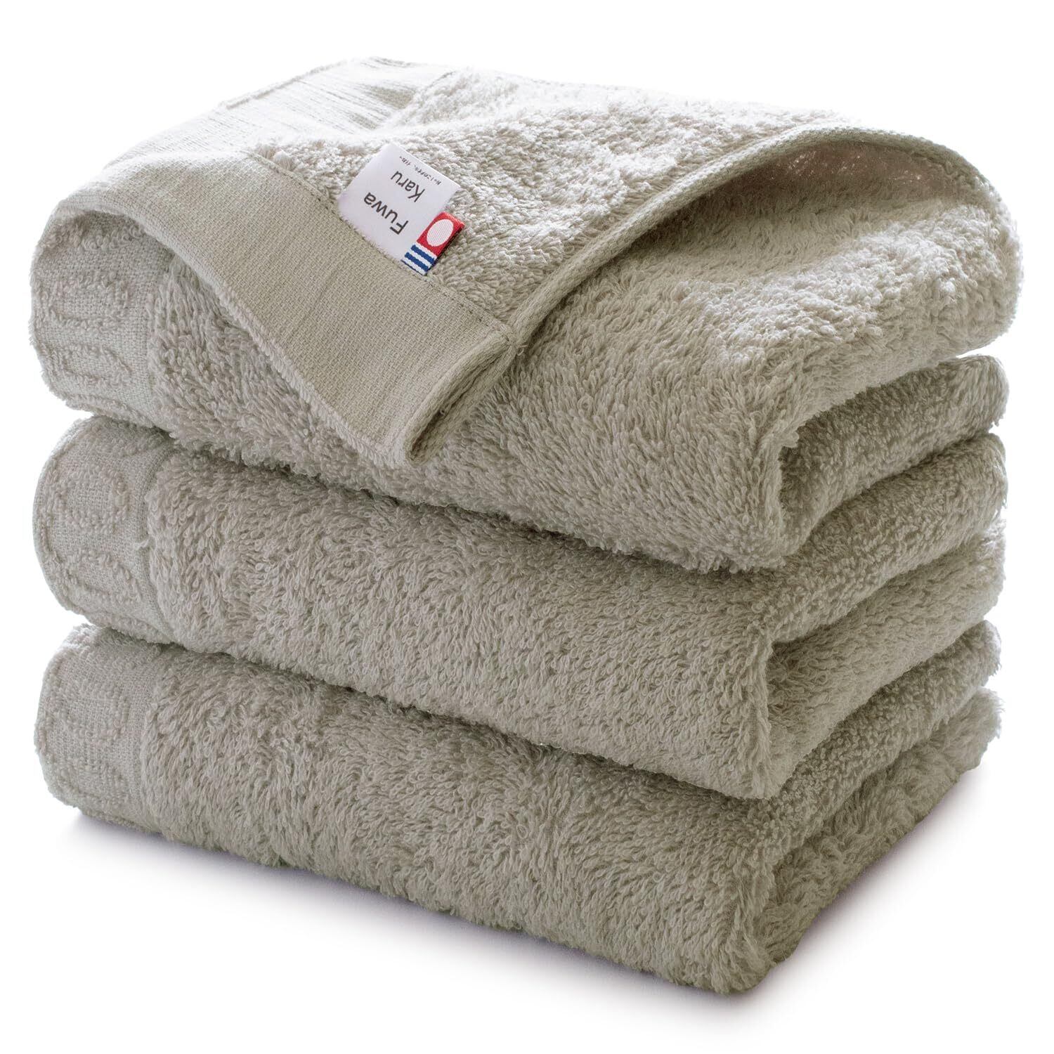 【FuwaKaru フェイスタオル 3枚セット】 サイズ:約33×85cm、重さ:98g/枚、綿100%、産地:今治/愛媛県/日本、認定番号:第2021-371号