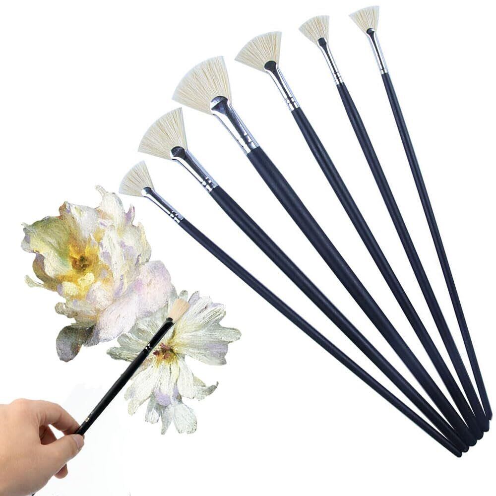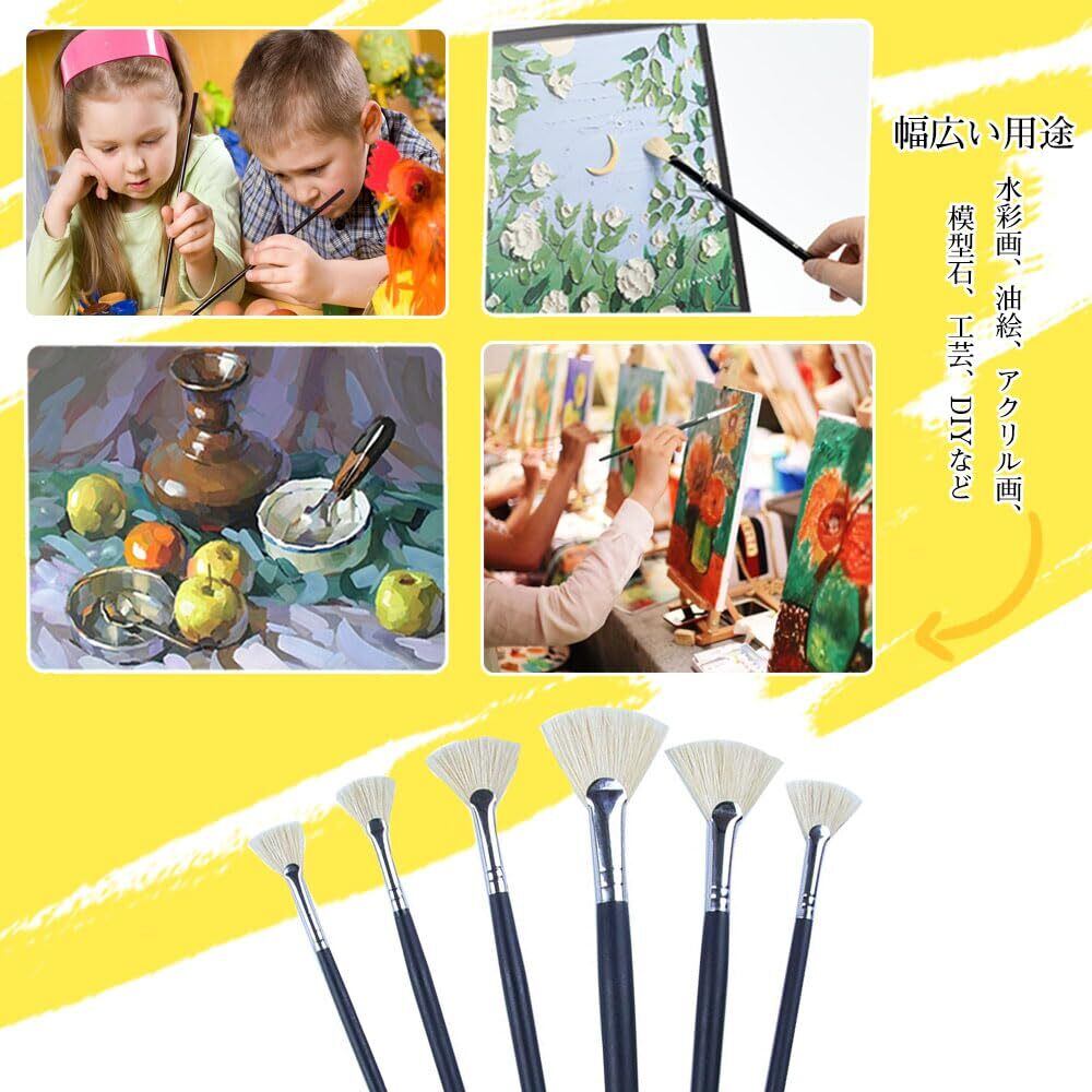 扇型ブラシ 画材ブラシ 油彩画筆 ペイントブラシ 6本セット水彩筆 豚毛画筆 絵の具 木材面相ブラシ 模型 学生 装飾に適用 塗装 アクリル画 水彩画 (オフホワイト)