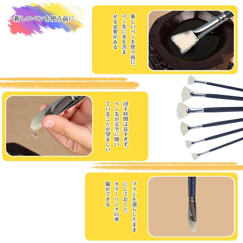 セット内容:6種類の扇型筆シリーズ。素材:バーチペンホルダー、ニッケルメッキ銅管、猪鬃毛。モデル:第2、第4、第6、第8、第10、第12。カラー:オフホワイト。