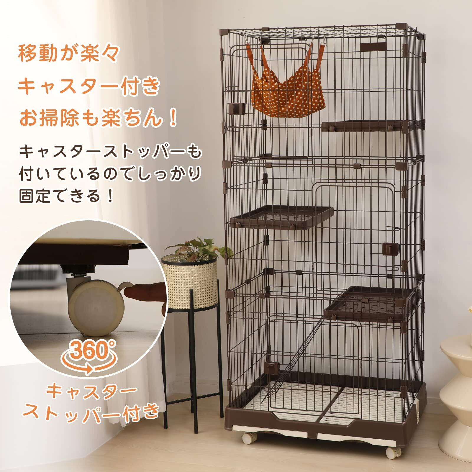 PETTOM 猫ケージ キャットケージ ケージ 幅82cm 2/3段 ペット 猫 キャットゲージ キャット タワー 収納 キャスター 付 脱走防止扉 頑丈 檻 ねこ ネコケージ コンパクト ハンモック 多頭飼い (三段(82*57*179CM)) | BASE SHOP