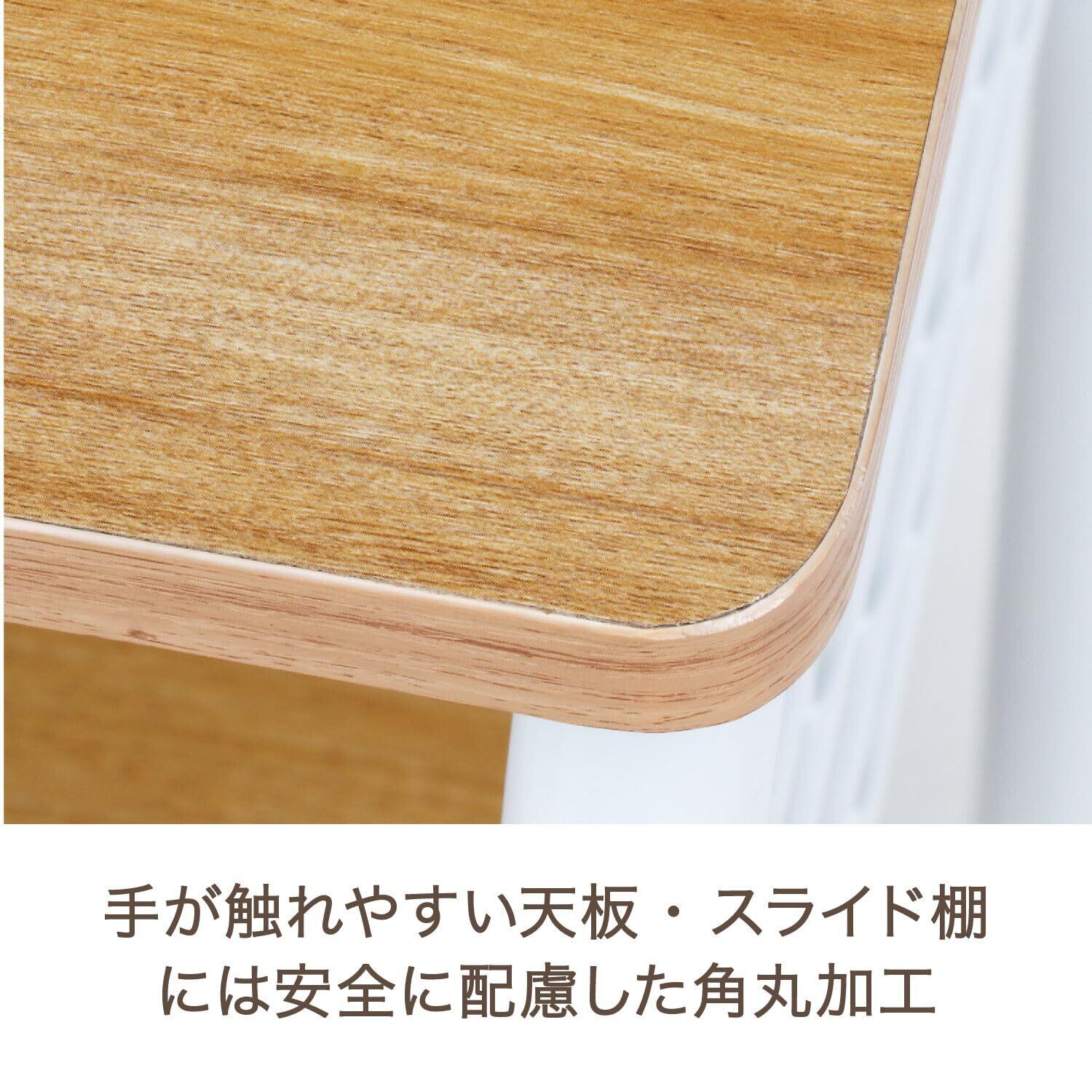 不二貿易 レンジ台 キッチンラック 幅51.5×41×高さ89.5cm ホワイト ナチュラル スライド棚 収納 レンジワゴン キャスター付き 14640