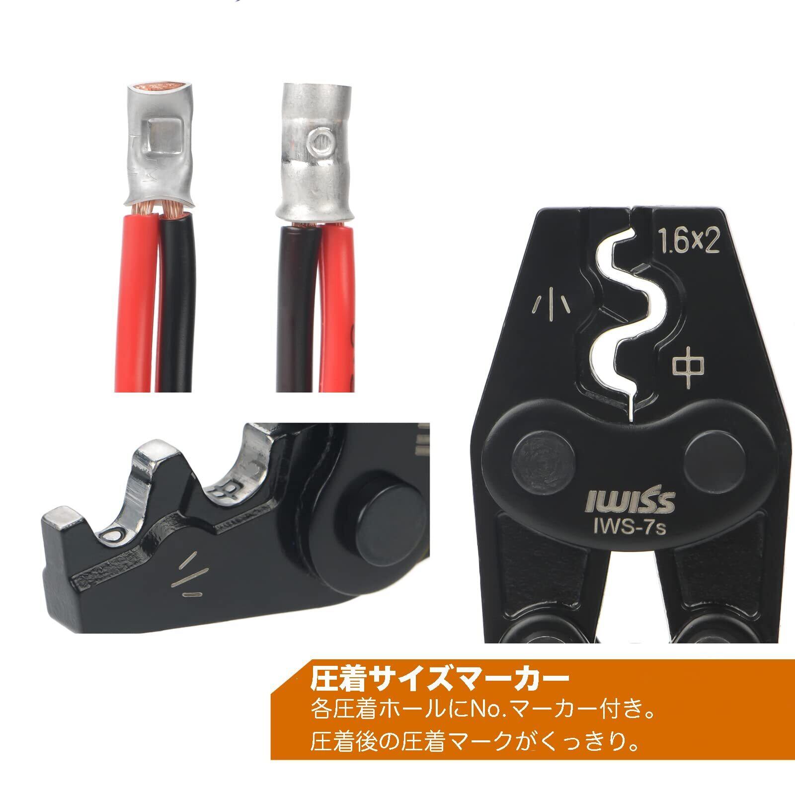 アイウィス(IWISS) リングスリーブ 圧着工具 JIS準拠品 ラチェット式 小(1.6x2)・小・中用 IWS-7s