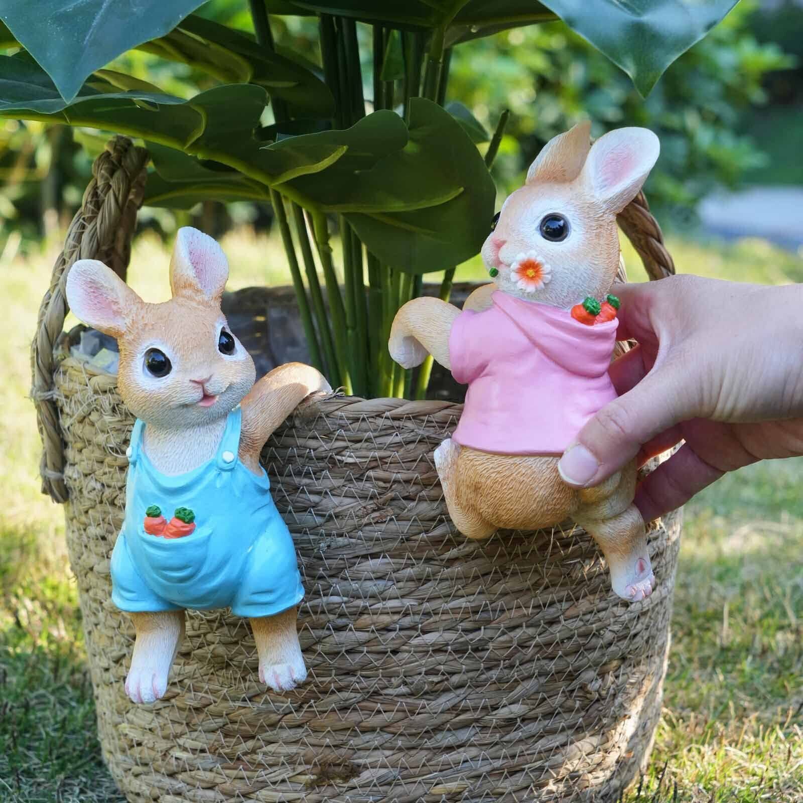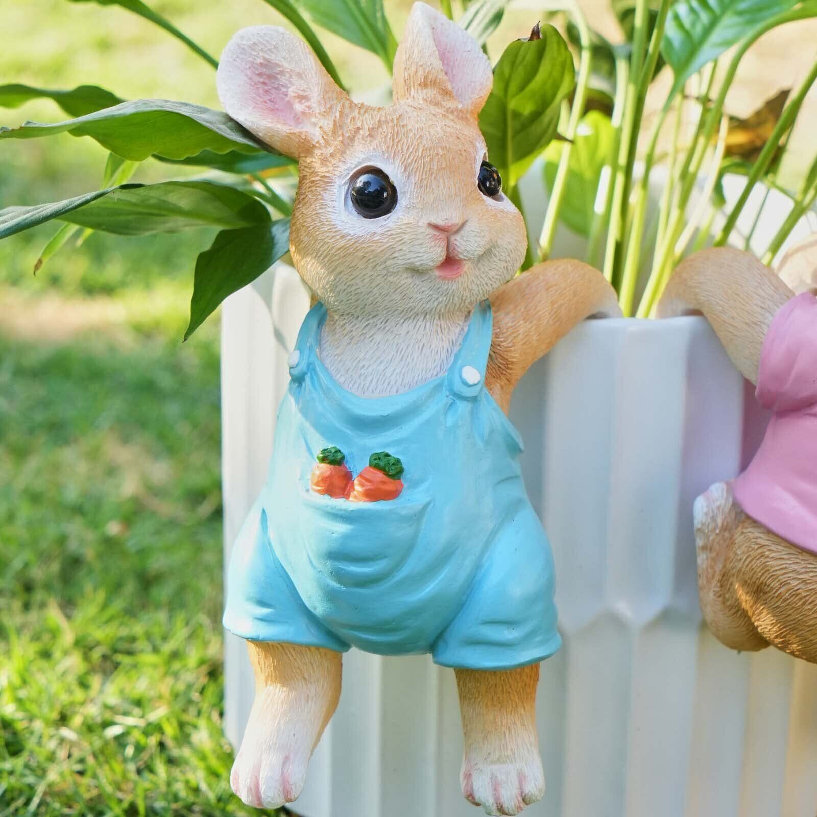 ガーデニング 置物 かわいいうさぎ 置物 ガーデンオーナメント - ガーデニング雑貨 おしゃれ 屋内屋外装飾 癒しウサギ 置物 多肉鉢 植木鉢 柵 装飾用(植物と鉢は含まれません)