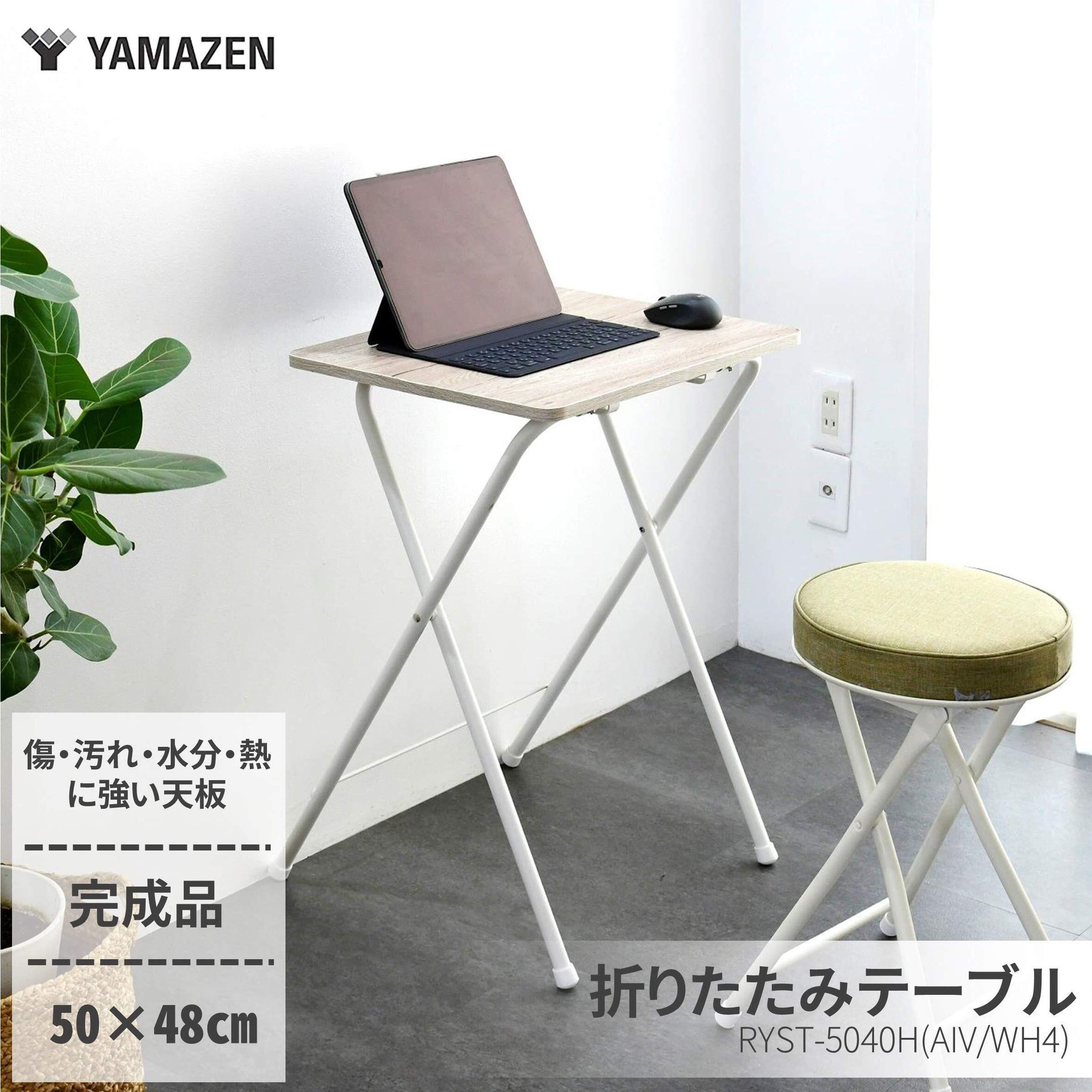 山善(YAMAZEN) テーブル ミニ 折りたたみ サイドテーブル 幅50×奥行48×高さ70cm ハイタイプ 傷・汚れ・水分・熱に強い天板(メラミン加工) なめらかな表面 角が丸い アンティークアイボリー/ホワイト RYST5040H(AIV/WH2) 在宅勤務 | BASE SHOP