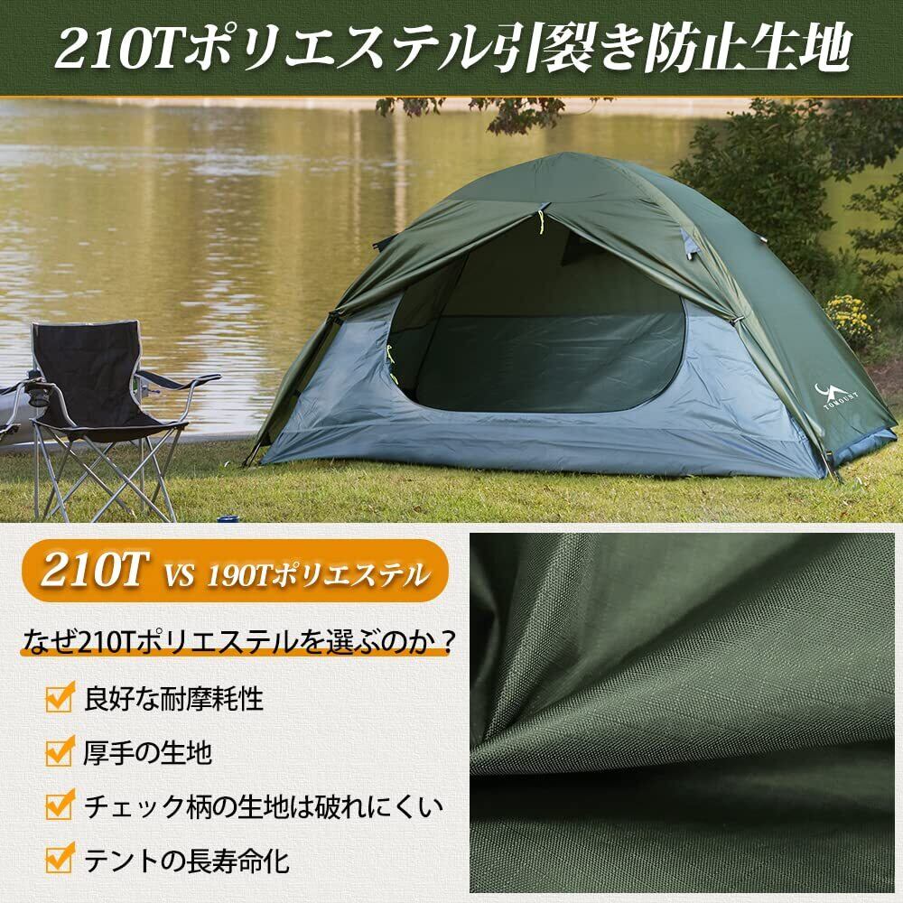 良い素材:アウターテント:UVカット210T ポリエステル布3000mm耐水圧の生地、豪雨までも心配しない!クッカーなどの荷物を置いてできる前室スペースがある。インナーテント:190Tポリエステル布、耐水圧3000mm、B3高精度ナイロン通気性ネット。内側収納ポケット、通風窓とランタンフック付き。