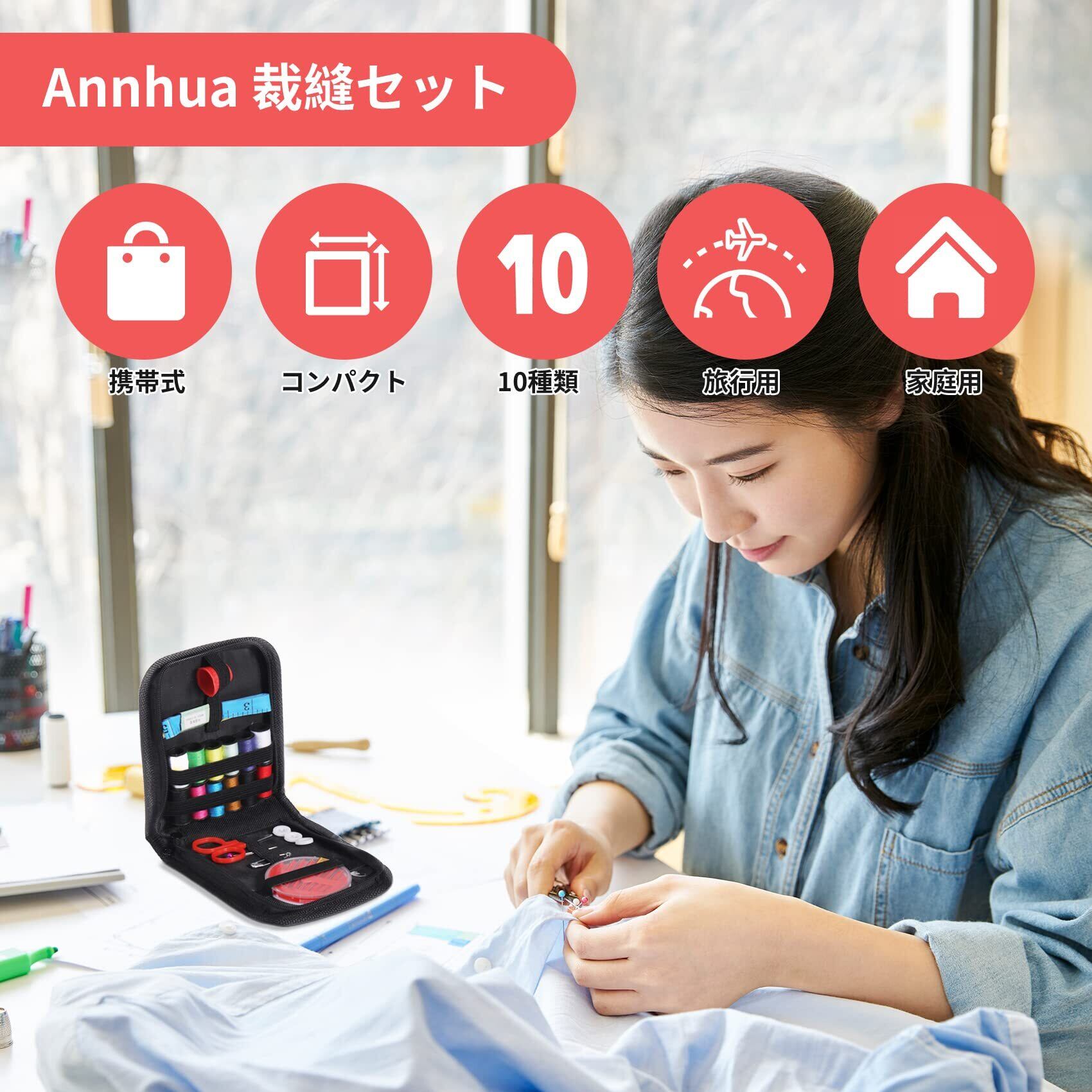 Annhua 裁縫セット 携帯式 ソーイングセット 裁縫道具 裁縫道具セット さいほうセット プロ裁縫道具 裁縫箱 縫い糸 12色糸 はさみ 指ぬき 糸通し 手芸diy 刺繍 裁縫 裁縫練習 衣類補修 旅行用 家庭用 収納ケース付き | BASE SHOP