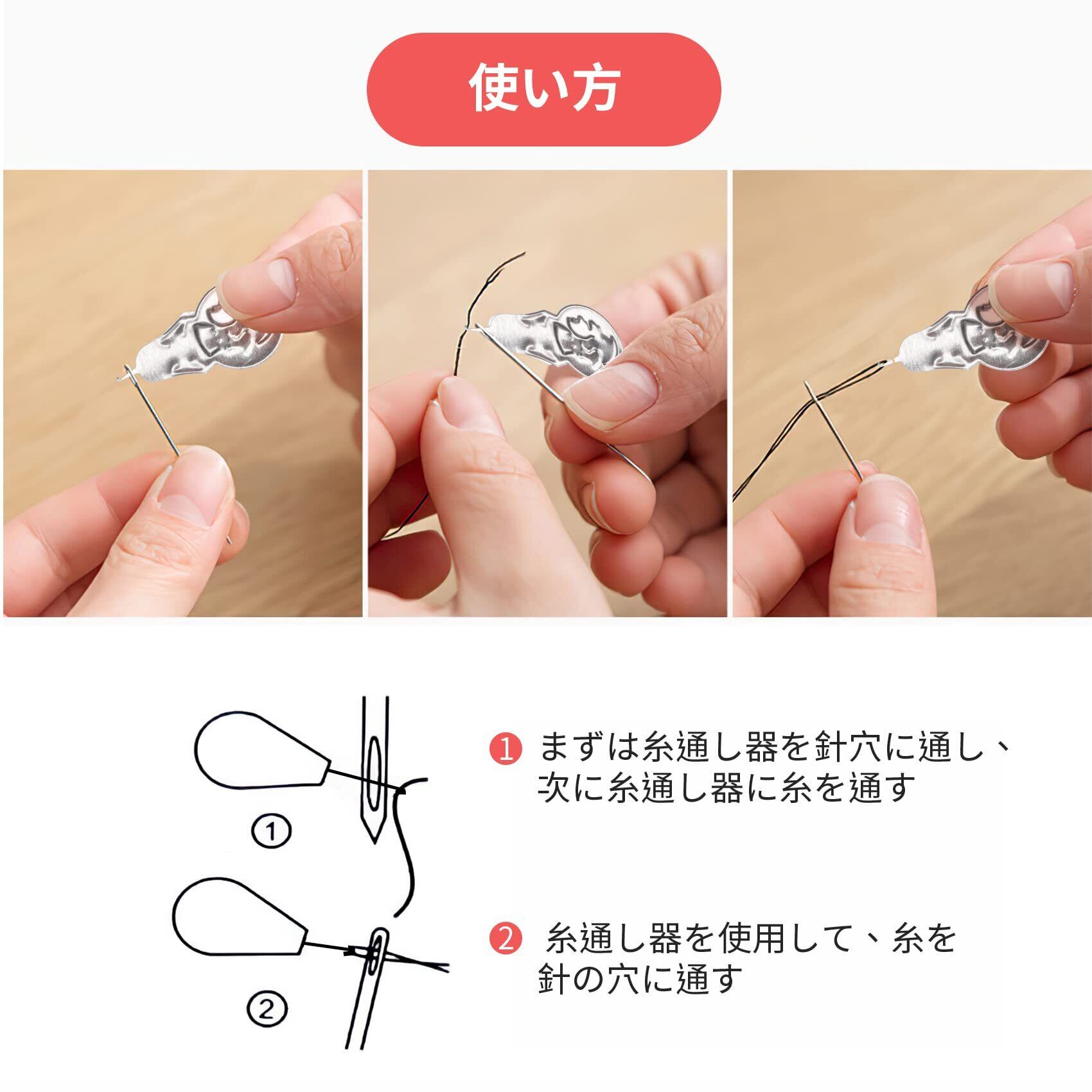 お裁縫セット内容:指ぬき*1、ハサミ*1、待ち針*2、安全ピン*1、予備ボタン*3、メジャー*1、糸通し*2、ぬい針ケース*1、縫い糸*12色(ランダムカラー)、収納バック*1など基本の裁縫道具が揃え、様々なお裁縫ニーズに満足できるソーイングキットです。