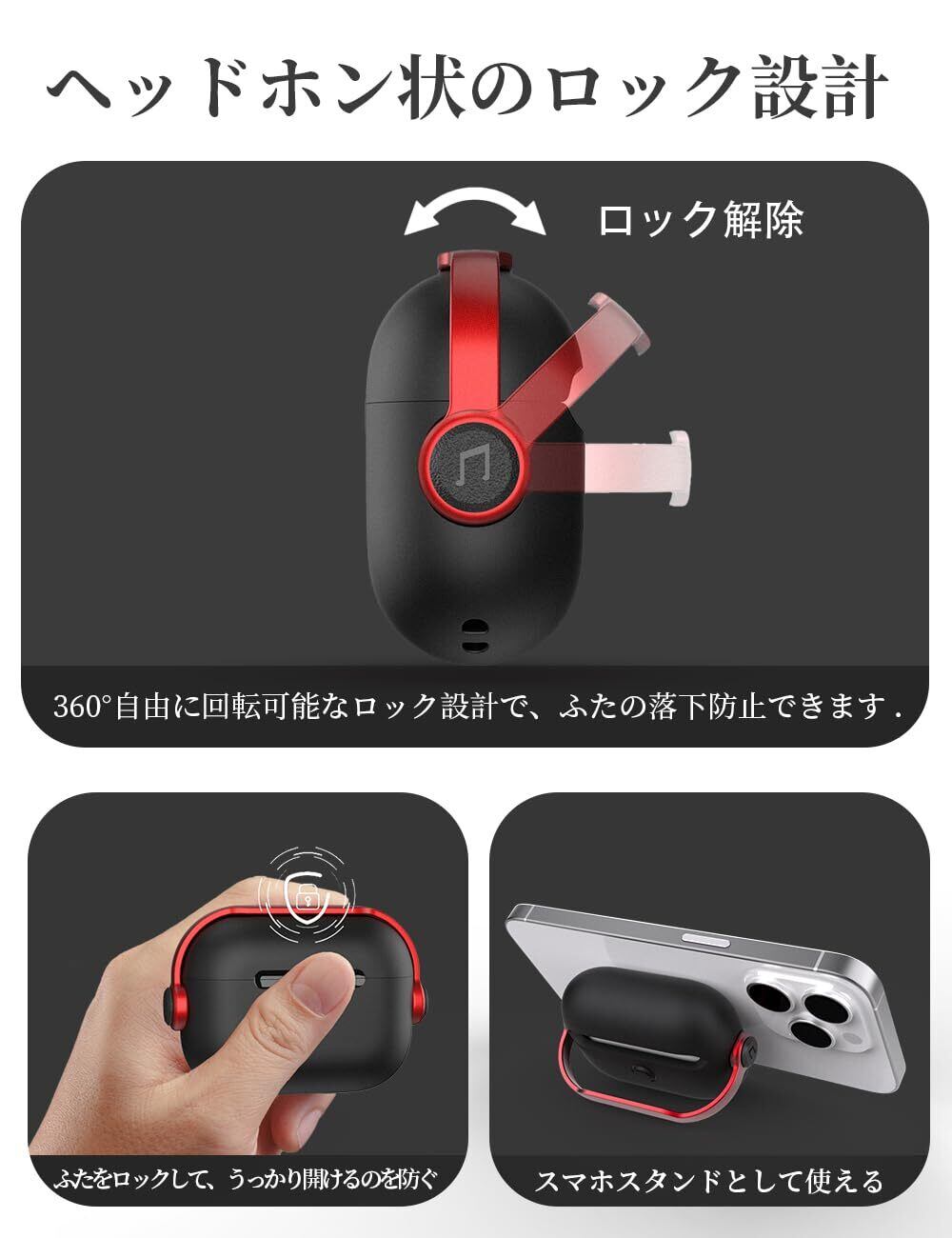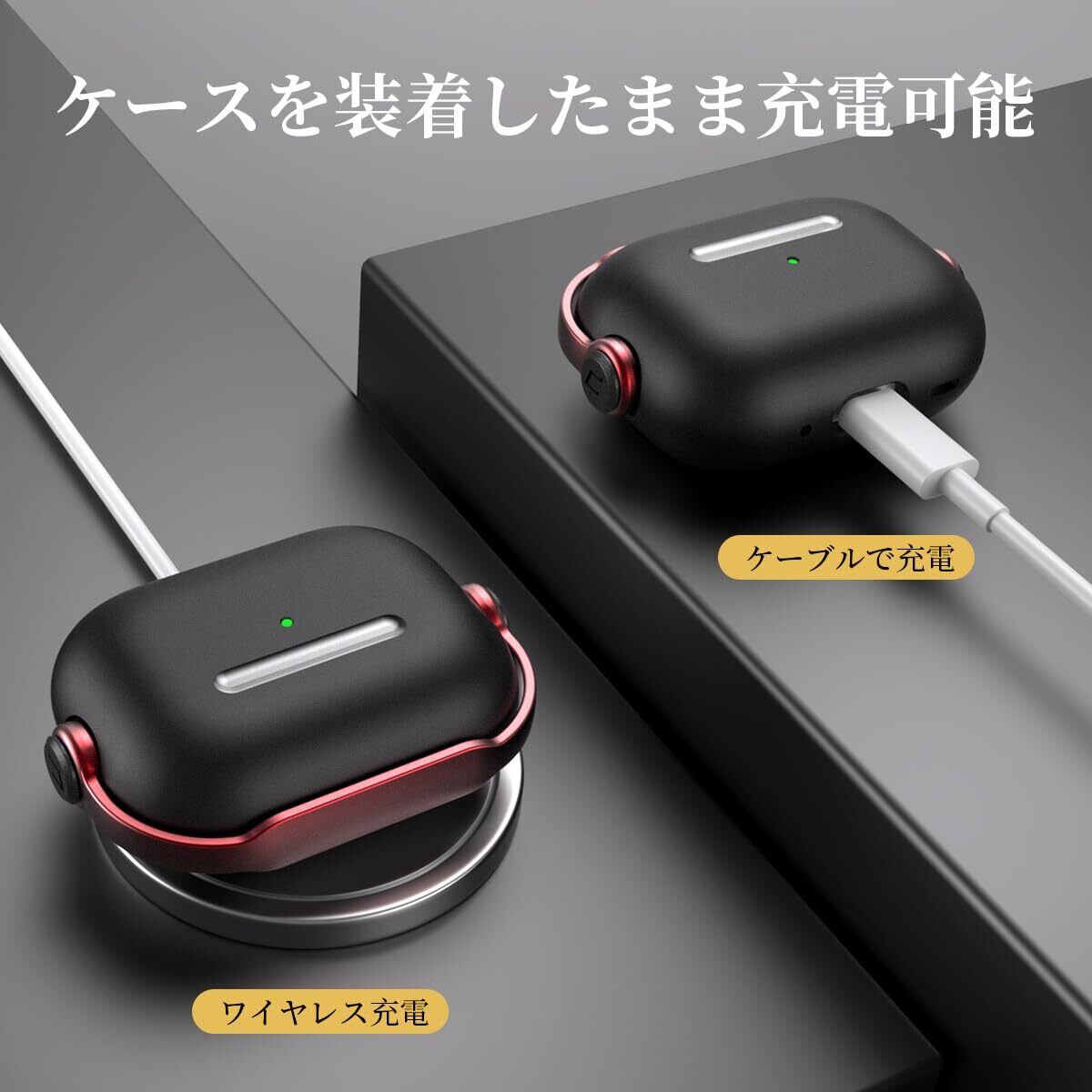HEIGKOIK AirPods Pro2 ケース ロック付き AirPods Pro 第2/1世代 2023/2022 /2019用 TPU 保護ケース LED可視 耐衝撃 ワイヤレス充電対応 カラビナ付き (黒+赤) | BASE SHOP