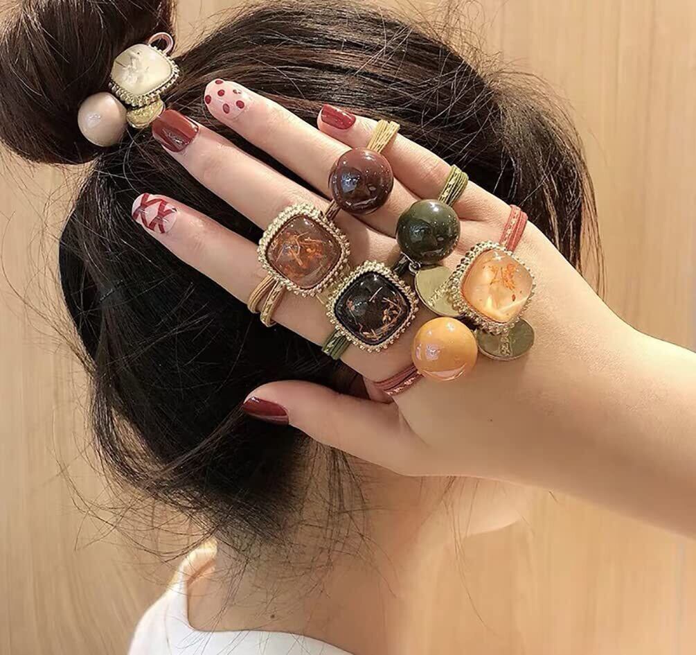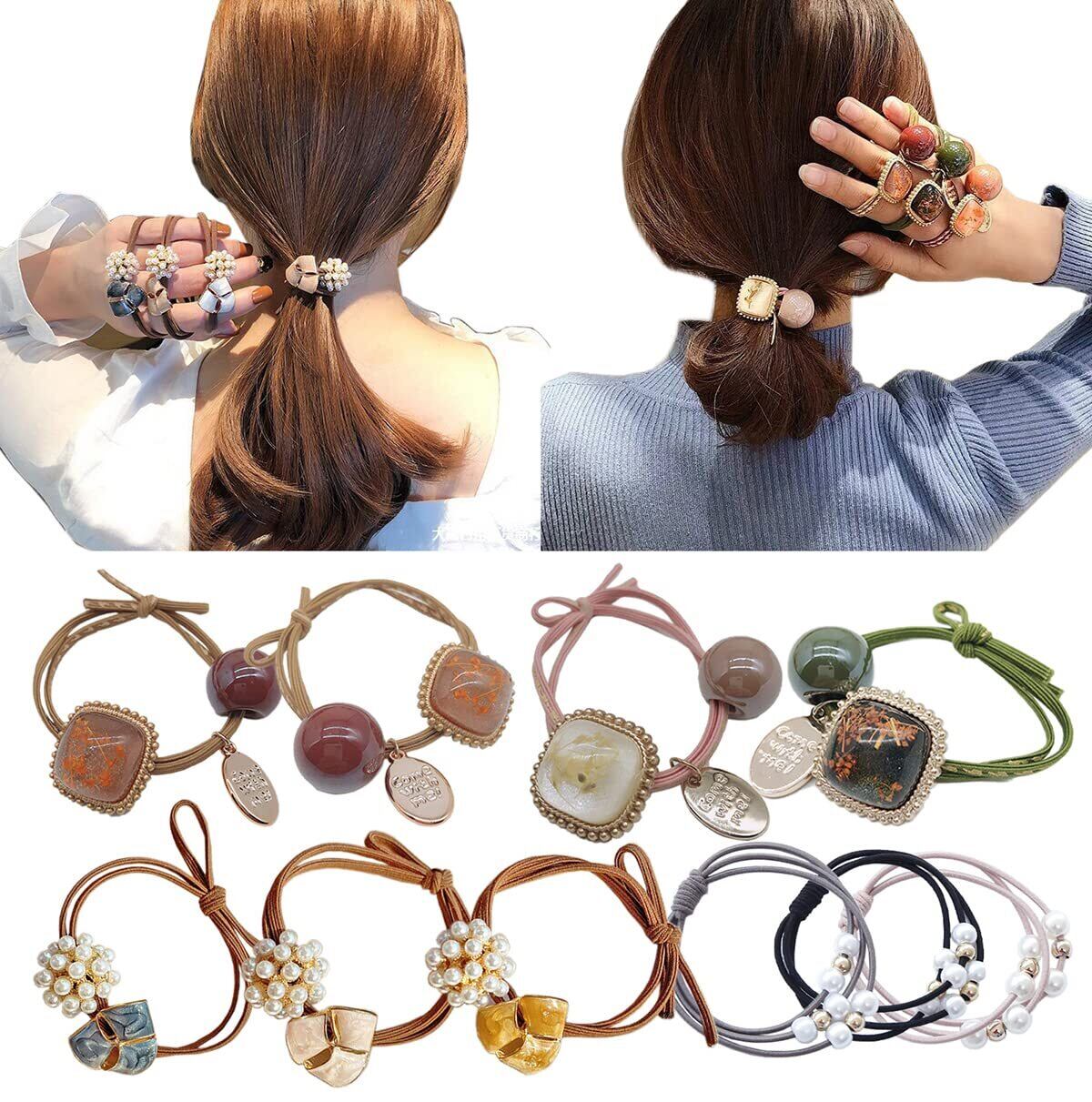 ヘアゴム 10点 セット パール ビーズ 大人 シュシュ ヘアアクセサリー 上品 カジュアル オフィス 髪留め おしゃれ春 夏 秋 (Aset)