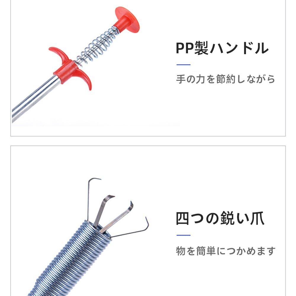 Renjzle パイプクリーナー 柔軟なグラバーピックアップツール 160cm ワイヤー式 4本爪 風呂・洗面所・キッチン・ 排水溝・トイレ・排水管のつまり解消に使用可能 髪の毛 詰まり解消