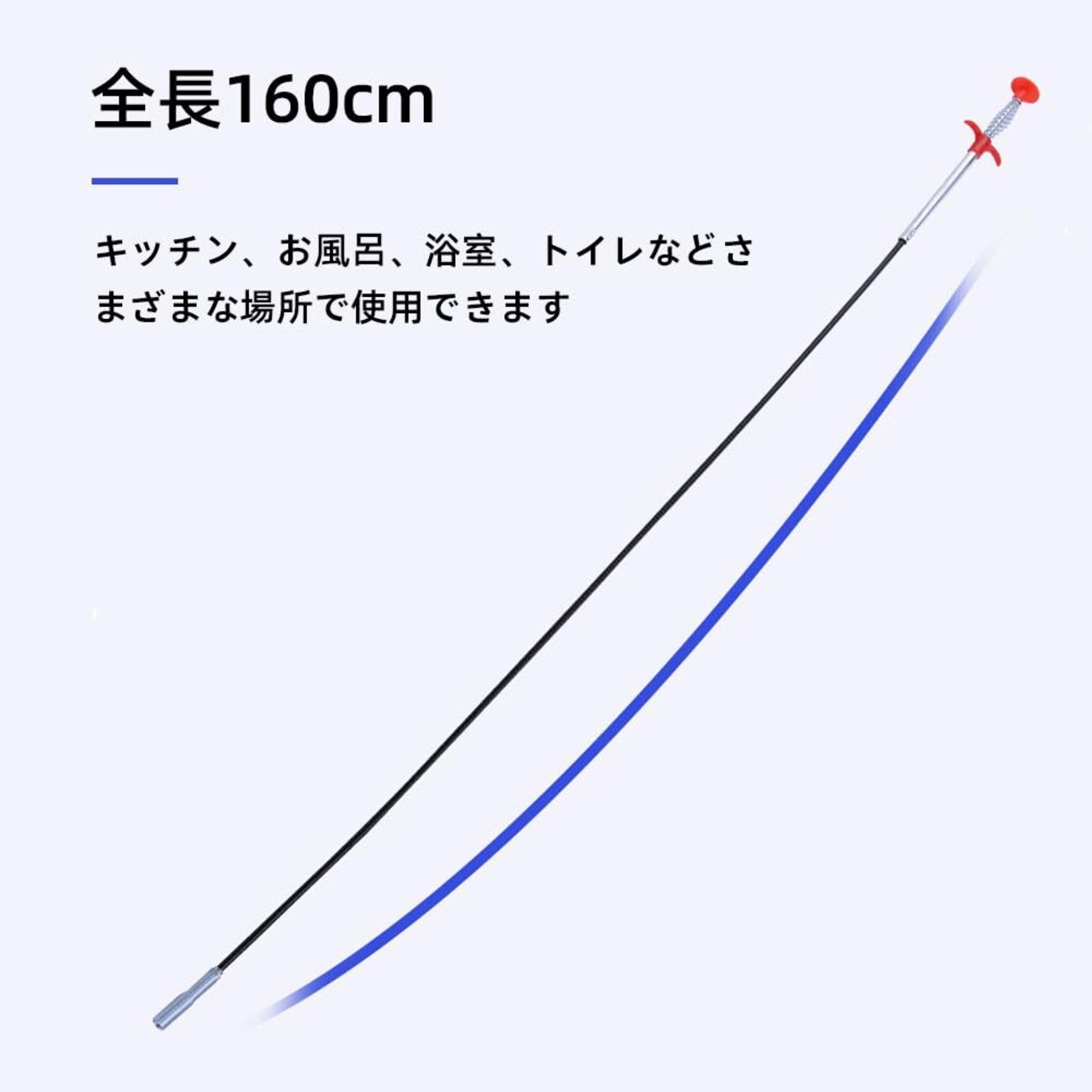 【使いやすい】160cmの長さと柔軟なスプリング付きケーブルで、狭い場所も清潔にすることができます。橡皮包みのスチールワイヤーは生錆しにくく、小さなものもしっかりつかめる設計です。