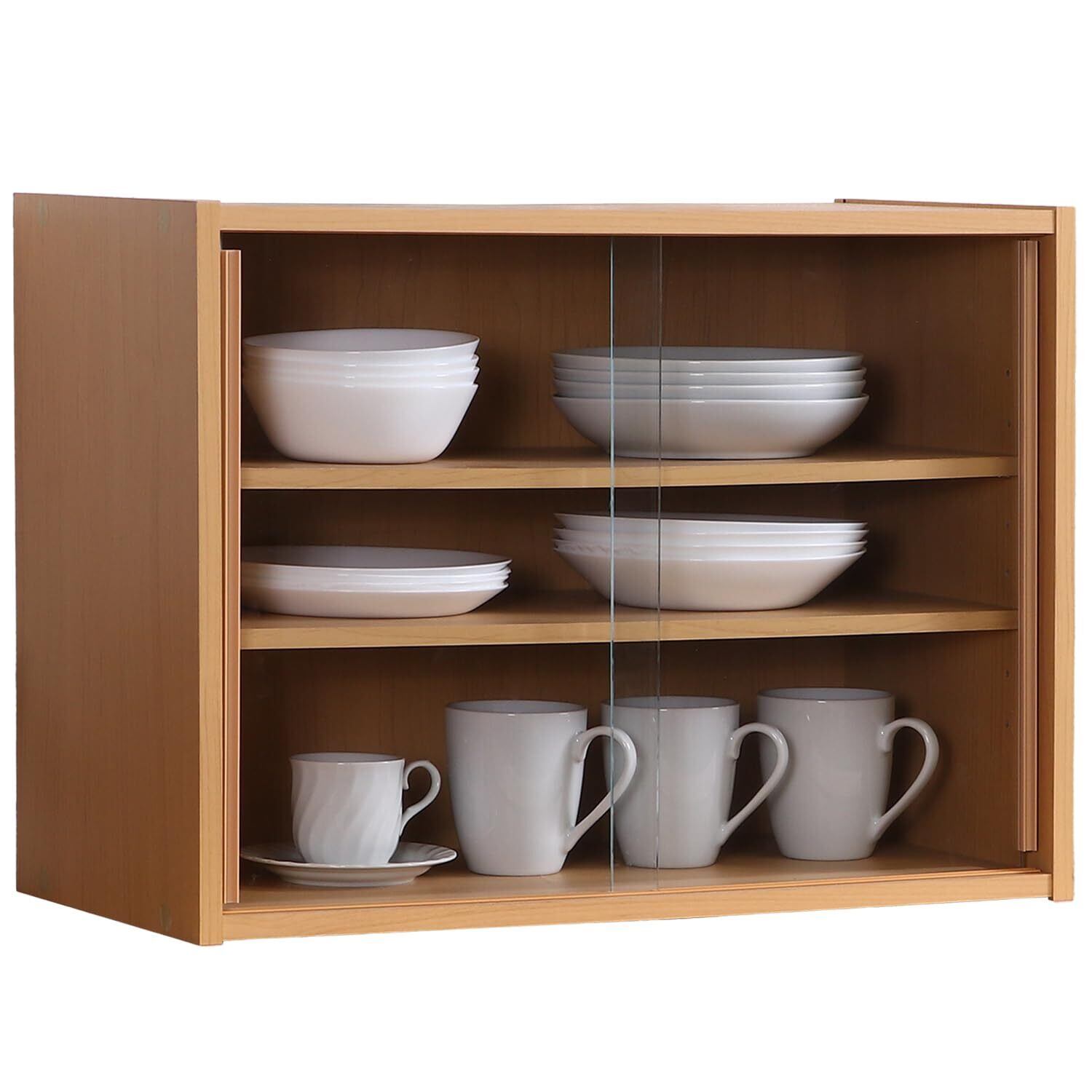 不二貿易 食器棚 キッチン収納 幅60×奥行29×高さ44cm ナチュラル ガラス扉 可動棚 組立品 81909