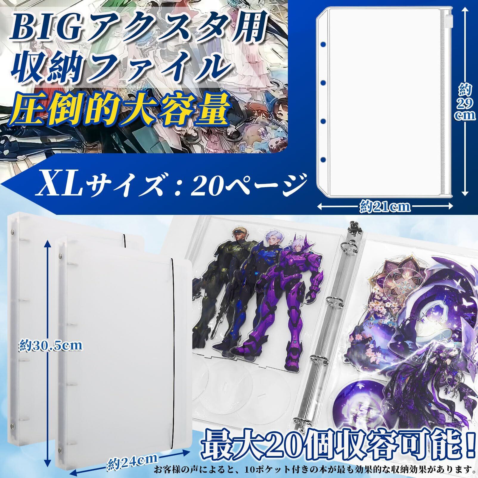 アクリルスタンド 収納 ホルダー BIGアクスタ 専用 ファイル 2個– 最大20個収納可能 落下防止 ホビー用収納ケース 持ち運び 収納 付箋付き サイズ:XL