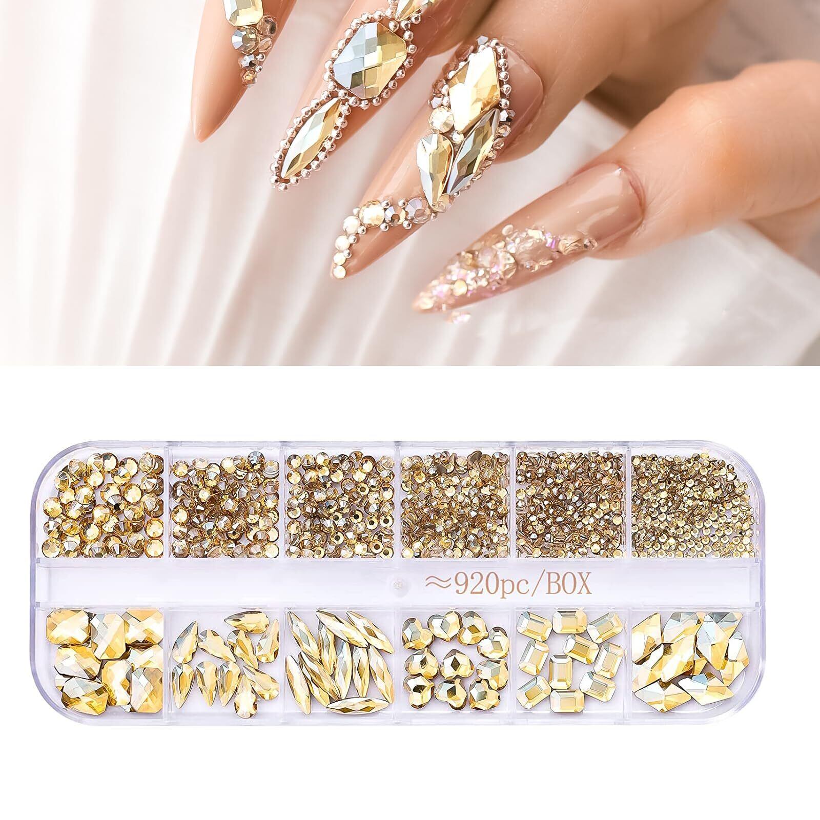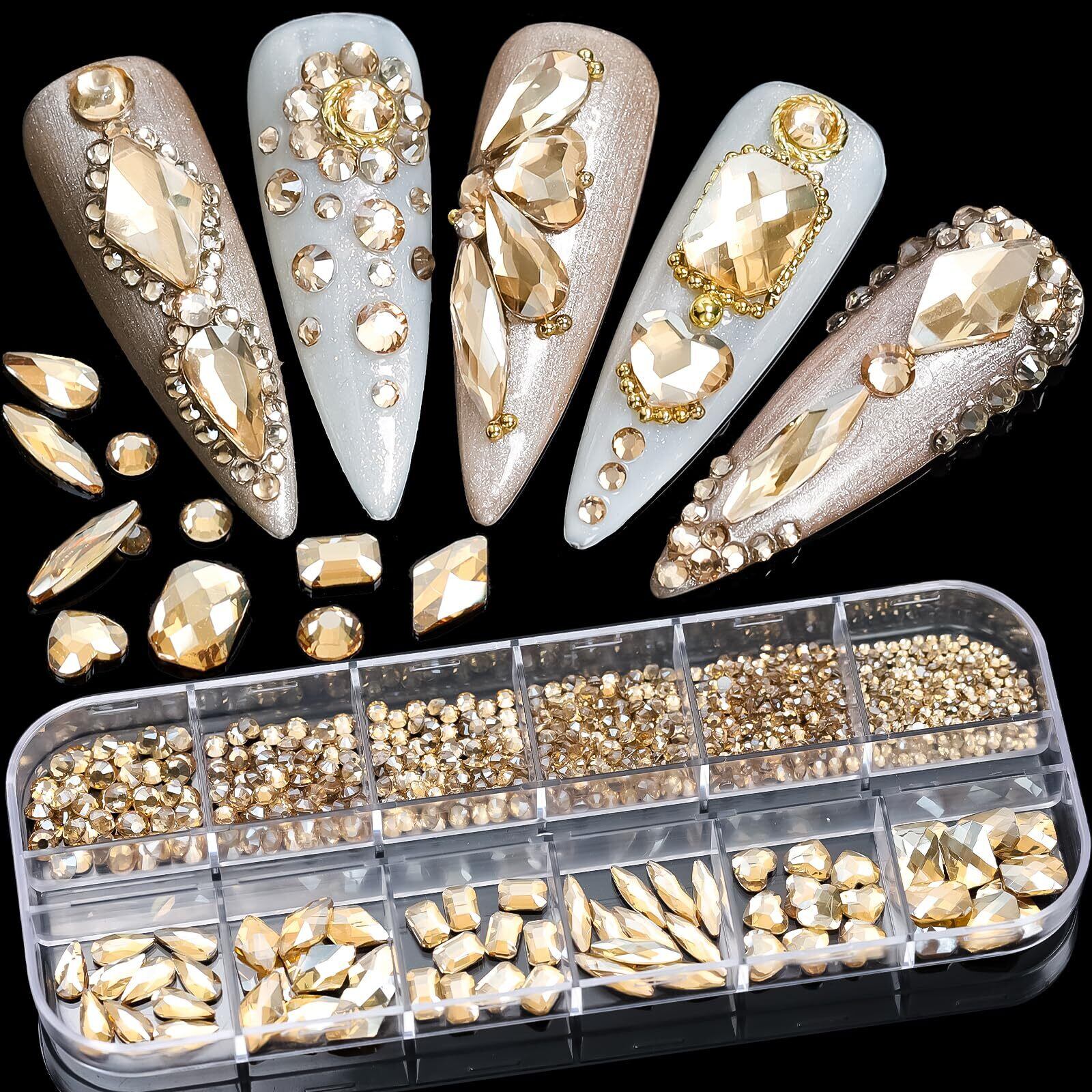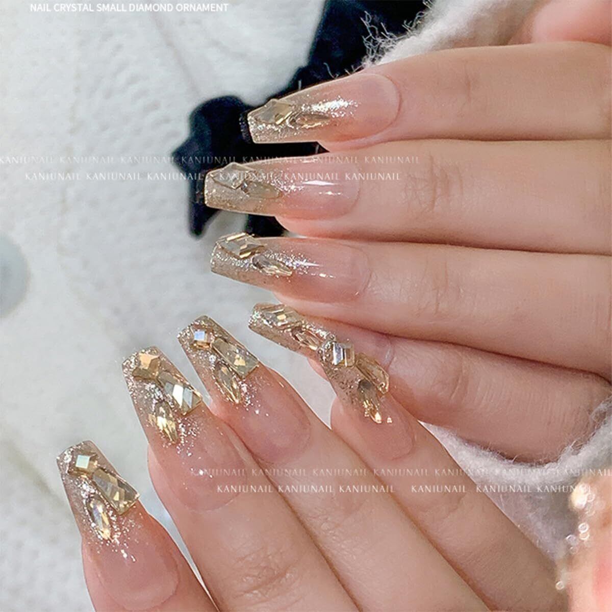 Unikato ラインストーン ネイルストーン ネイルパーツ ストーン ネイル用ストーン 立体 平底 ひし形 ハート 長方形 丸 ネイルアートパーツ クリスタル AB ラインストーン (シャンパン色) | BASE SHOP