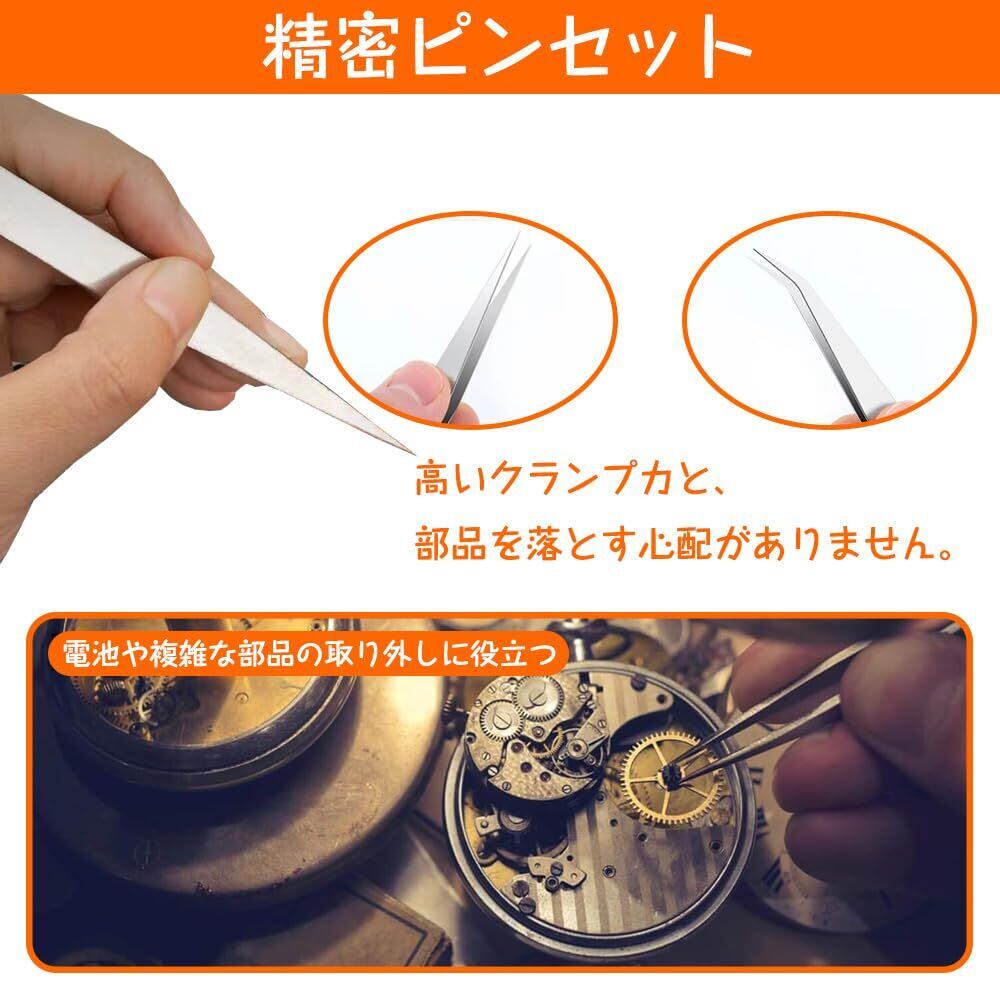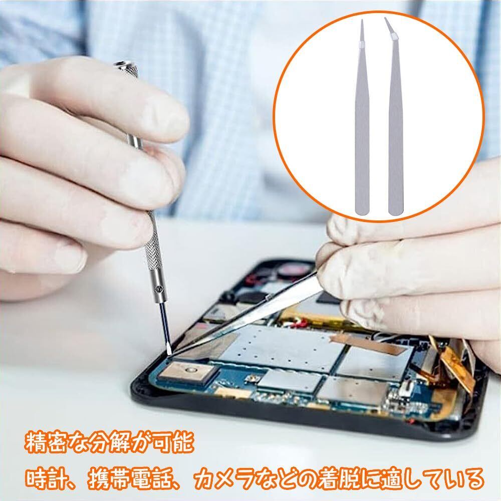 セットには5種類の異なるサイズの精密ドライバーと2本の精密ピンセットが含まれている。