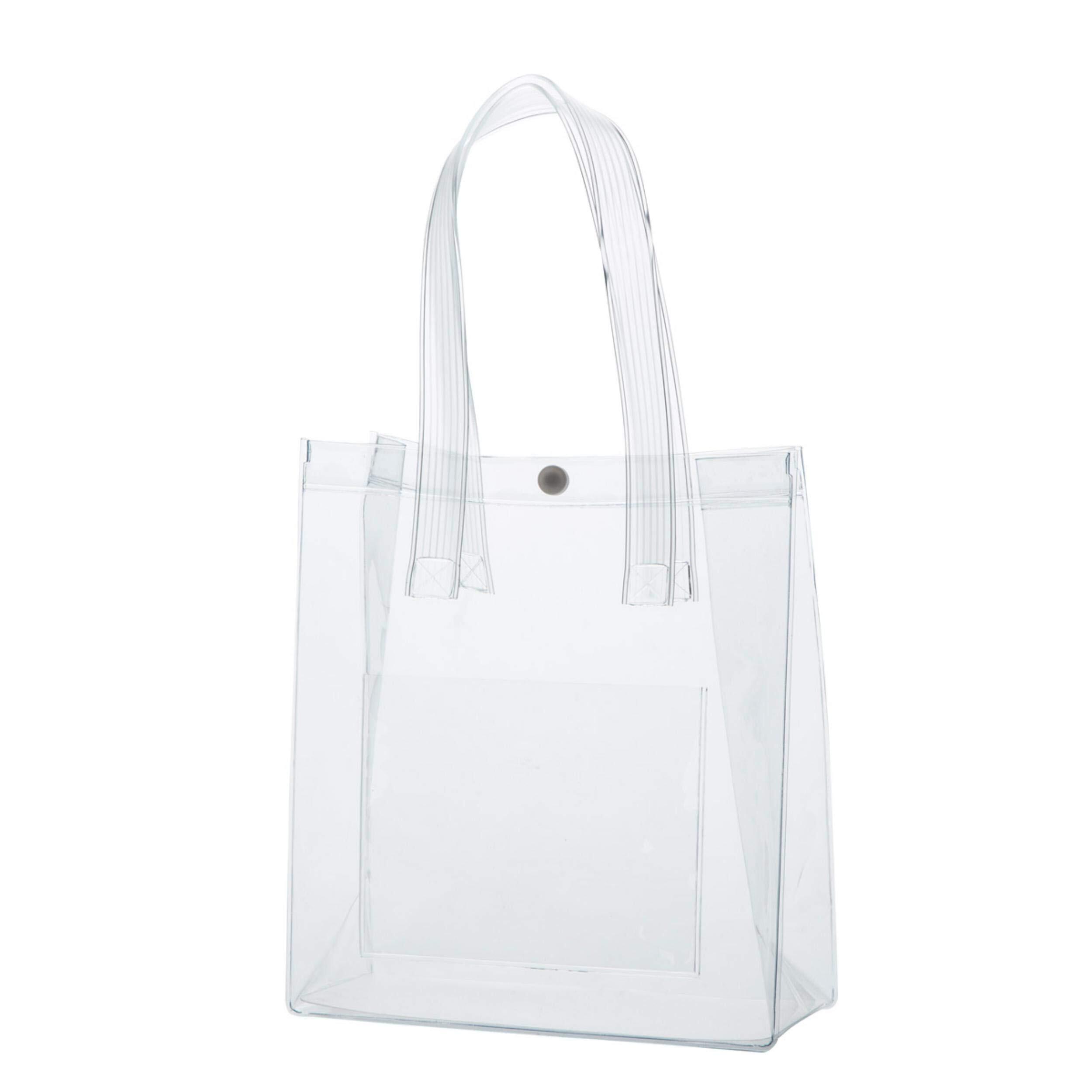 伊高 ビニールバッグ 透明 丈夫 な トート クリア バッグ M タテ長 ポケット W25×D10×H28 MMK-2528