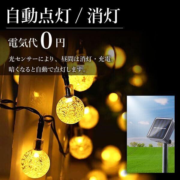 イルミネーション ソーラー 屋外 防水 イルミネーションライト ハロウィン クリスマス ソーラーライト ストリングライト ガーデンライト バブル LED 屋外用 明るい 飾り おしゃれ (ゴールド, 30球)