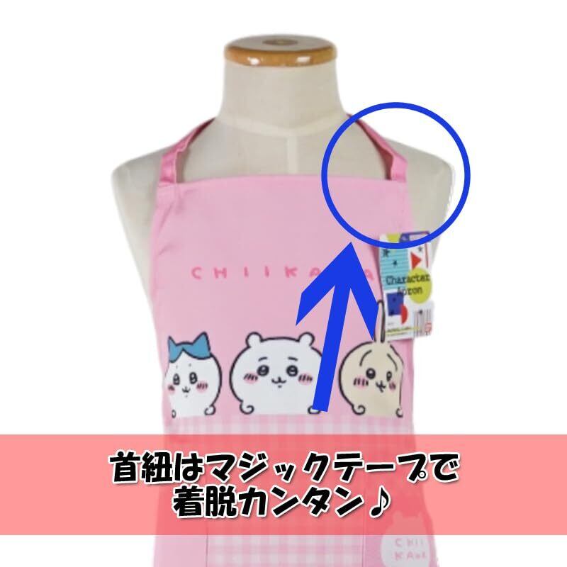 [野宗寅市商店] ちいかわ 子供用 エプロン 三角巾 セット はちわれ うさぎ 110cm ひとりでかぶれる 可愛い ピンク チェック 三角巾 保育園 幼稚園 入園 入学