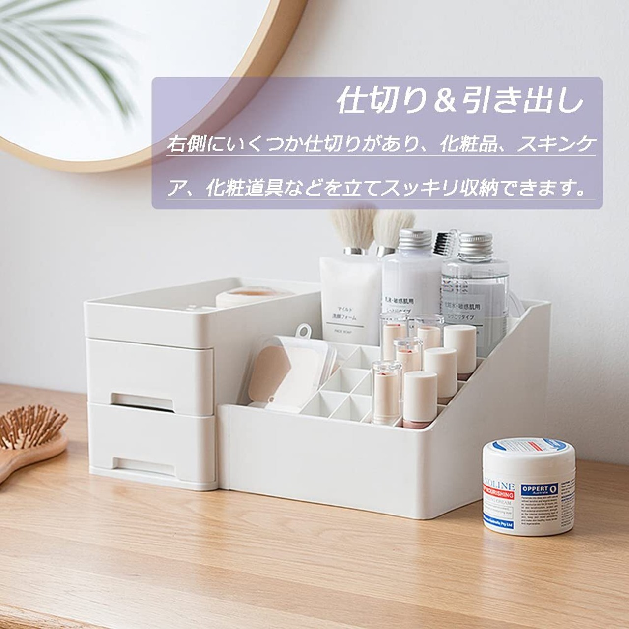 Etravel メイクボックス 化粧品収納ボックス 引き出し 仕切り 収納ケース コスメ収納 小物入れ 北欧風 シンプル 卓上収納 (白)