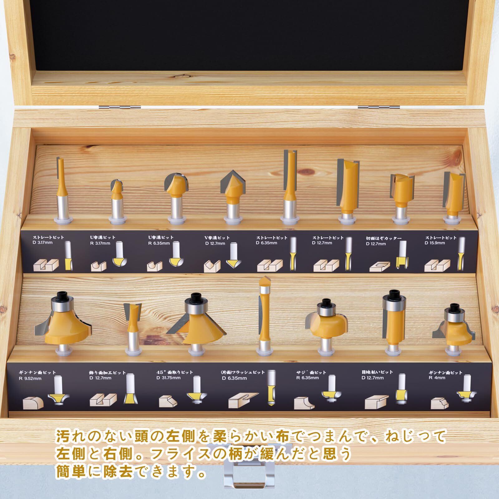 ▲使用頻度の高いビット, すべてのビットは経験豊富な大工から投票されます。木製収納ボックス付き,携帯便利,収納能力が強い。