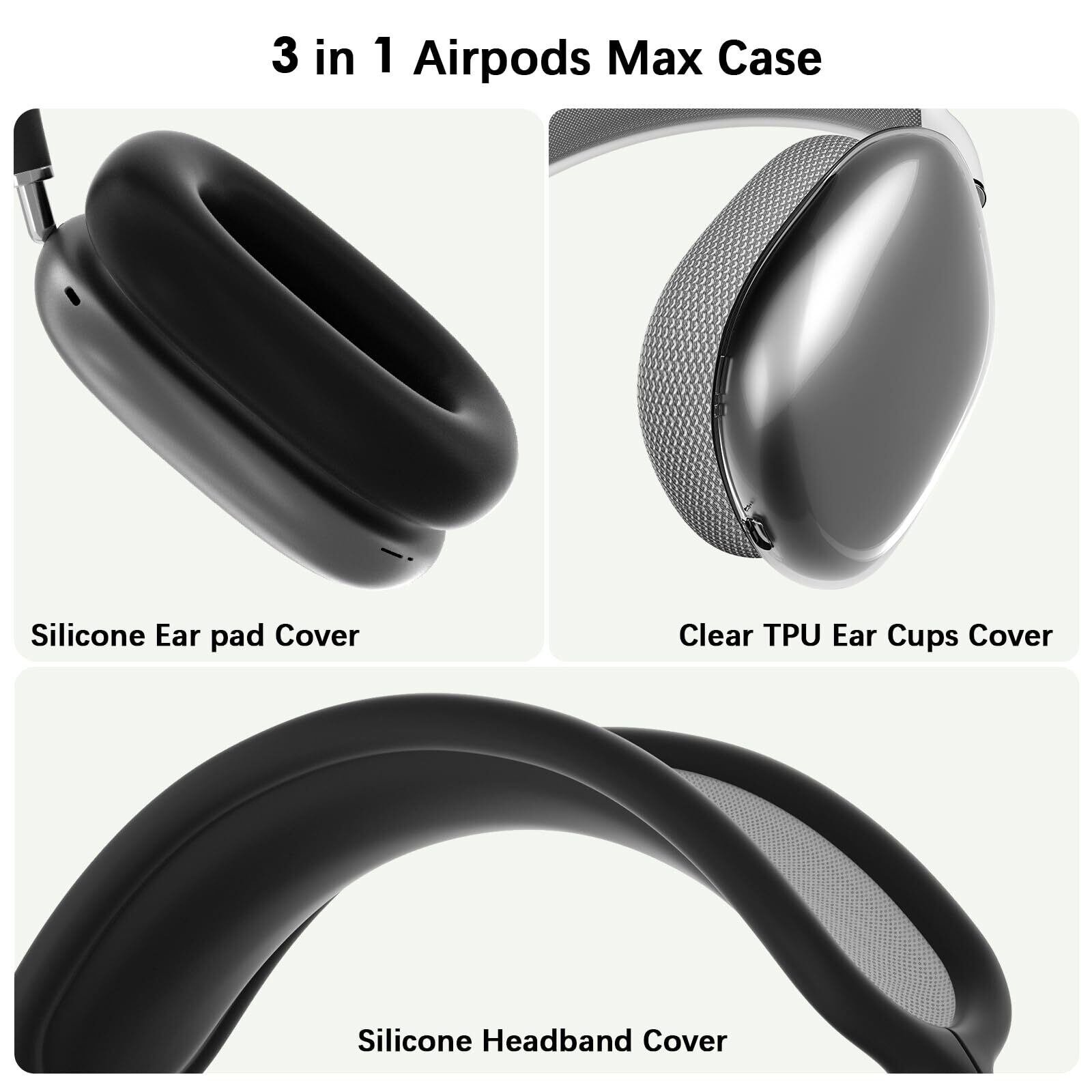 AIRSPO AirPods Max用シリコンケース、クリアソフトTPUイヤカバー/ヘッドバンドカバー、AirPods Maxアクセサリー(ブラック)