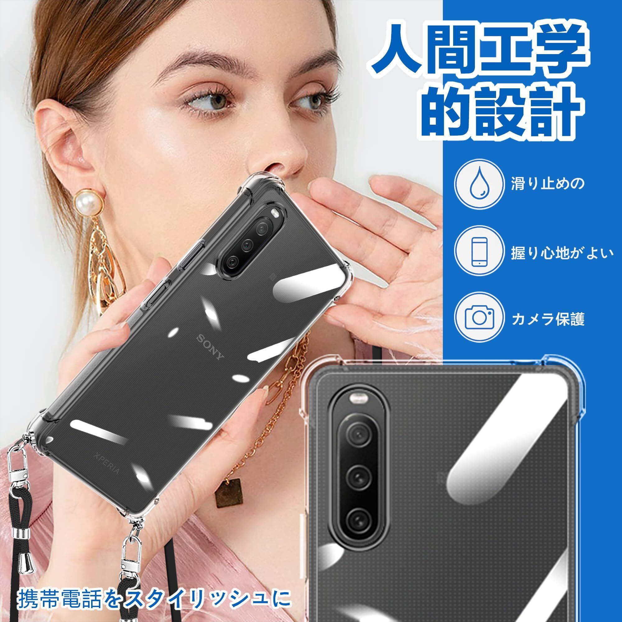 Xperia 10 IV ケース ショルダー クリア SO-52C / SOG07 ケース 耐衝撃 全面保護 エクスペリア 10 IV カバー ストラップ付き スマホケース 調節可能 肩掛け 斜めかけ 縄掛けケース 紐付き 薄型 軽量 取り外し可能 落下防止【透明】 | BASE SHOP